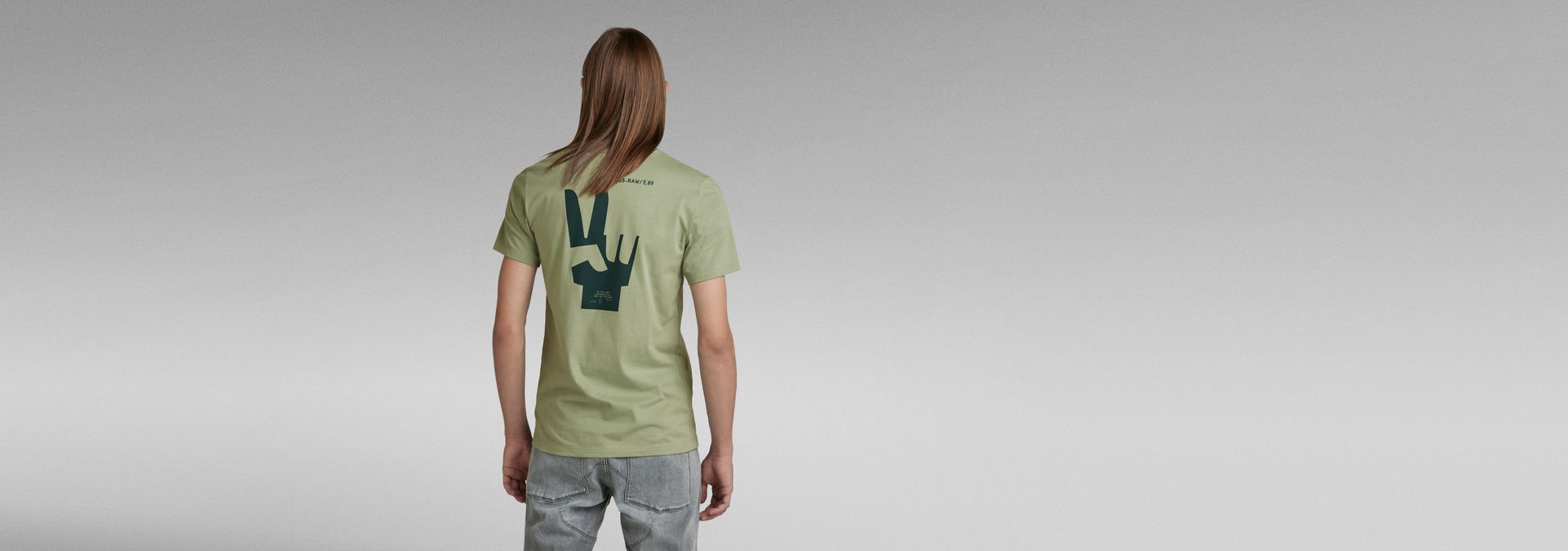 T-shirt Hand Back Graphic is one of our organic cotton graphic T-shirts. This slim fit version features a ribbed neckline and a graphic print at the chest and back.