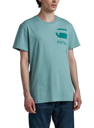 Organic cotton T-shirt G RAW Typography offers a straight fit and ribbed neckline. The graphic prints at the chest complete this graphic T-shirt.