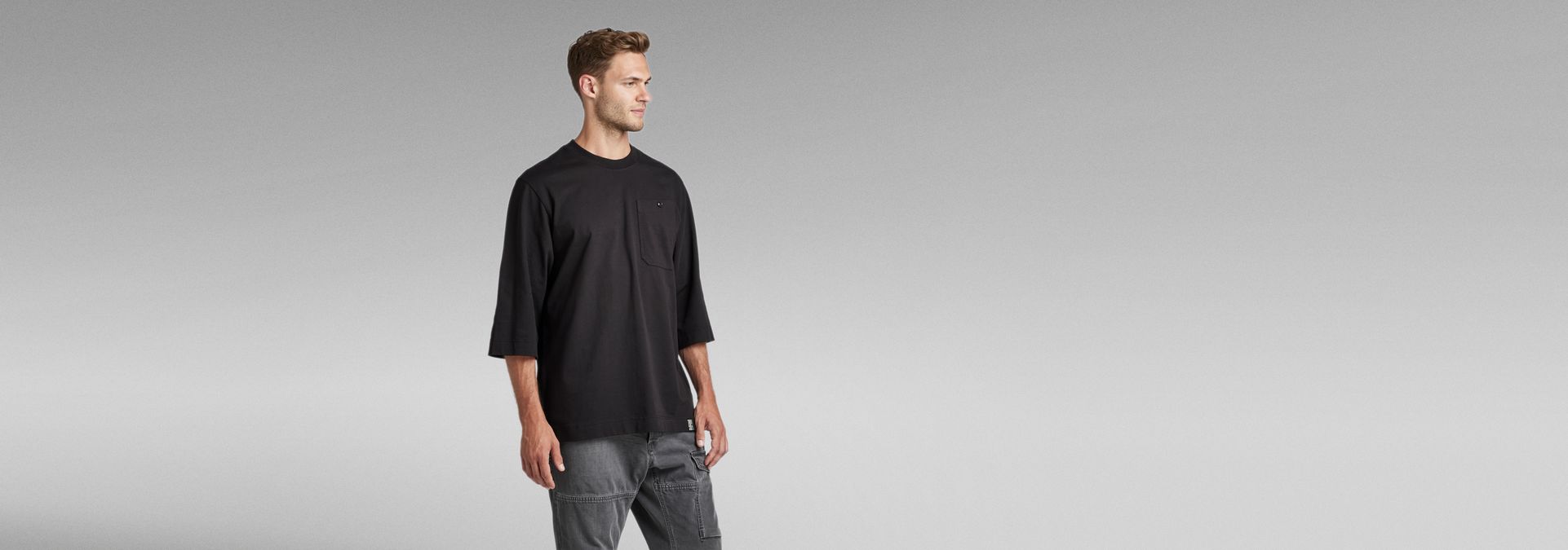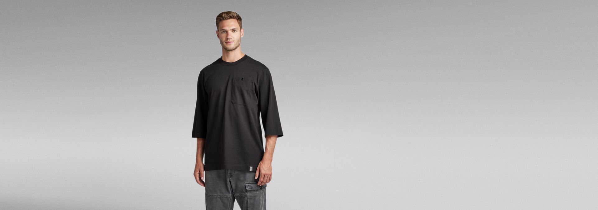 T-shirt Essential Loose is cut in a roomy fit and offers a single chest pocket with a button closure. The top edge is cut slanted. The short sleeves of this tee are kept longer to reach below the elbow.