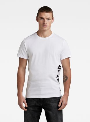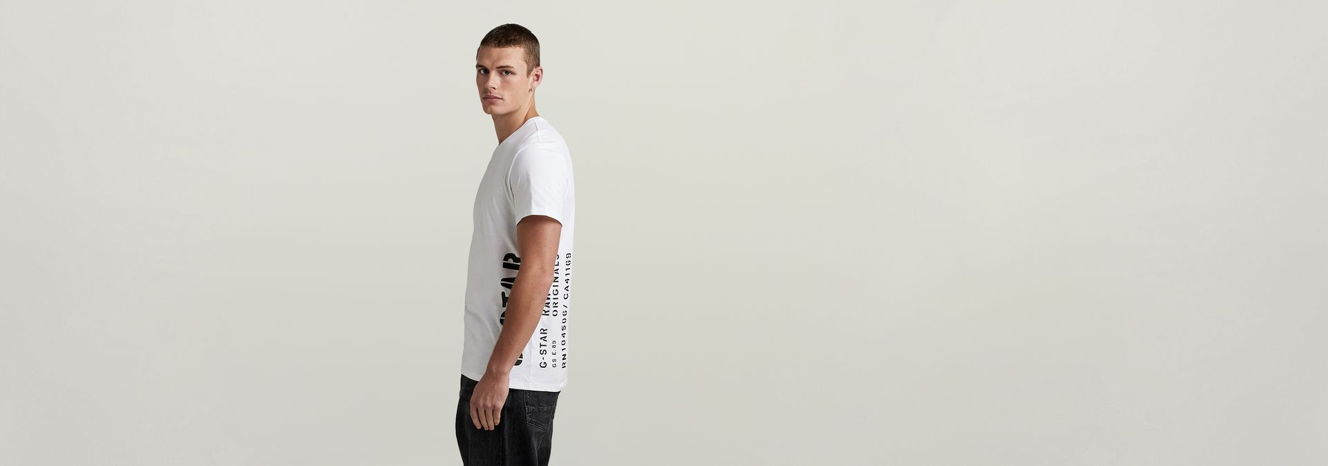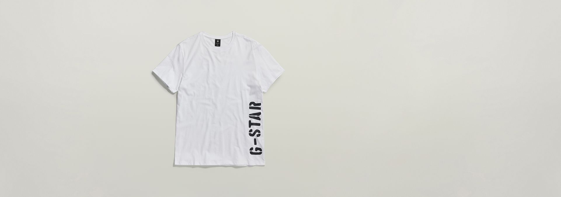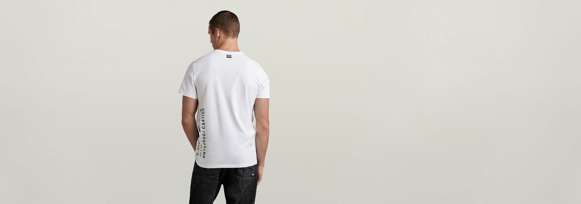 Organic cotton T-shirt Side Stencil is one of the graphic T-shirts we've developed. This version features graphic prints at the lower front and back side.
