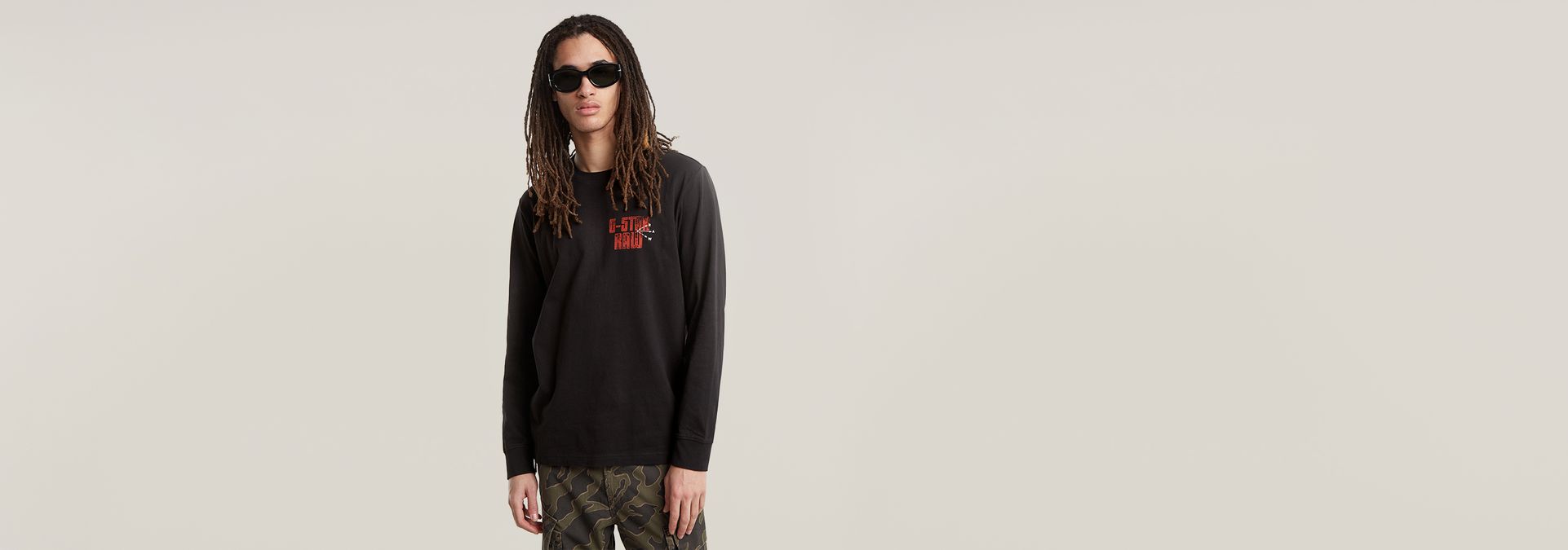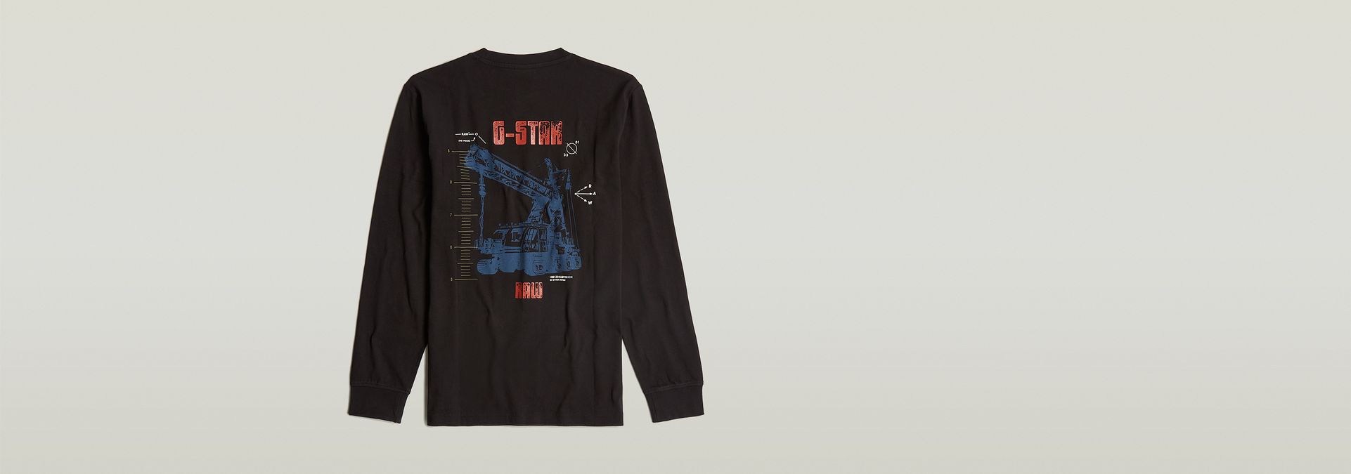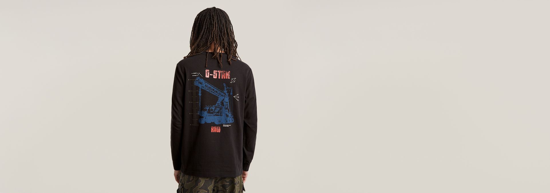 Long sleeved T-shirt Big Crane Back Graphic is cut in a straight fit. A graphic print is added to the chest and back. The sleeves are finished with a ribbed cuff.