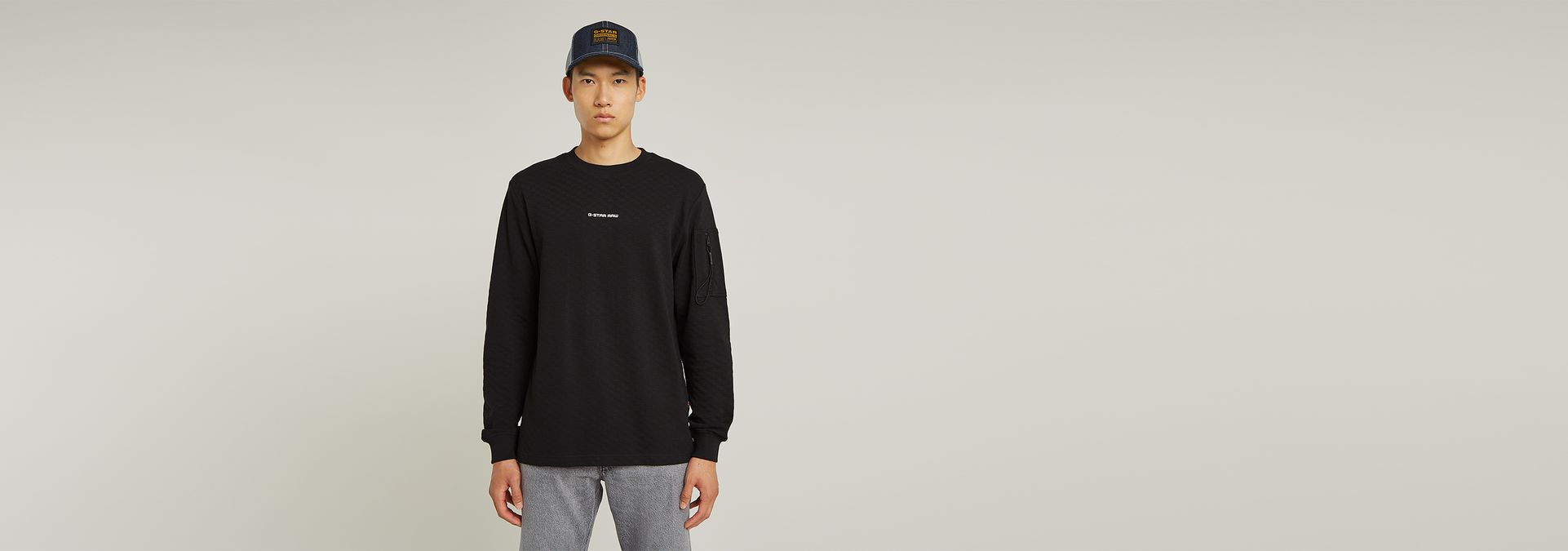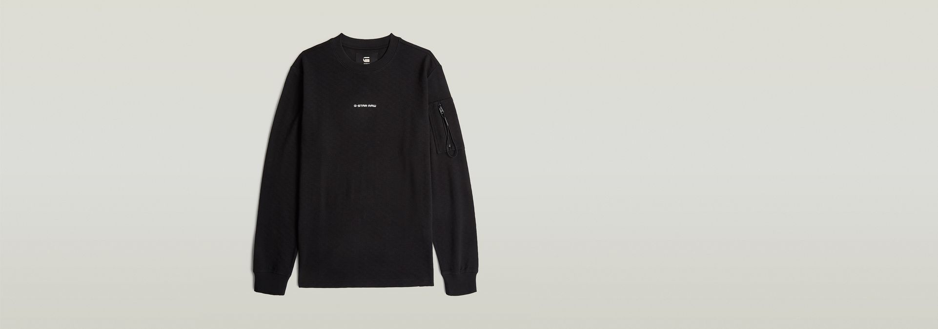 Tweeter Checquard Pocket offers a comfortable piece that feels lightweight as a tee with the aesthetics of a sweater. This lightweight sweater shows a zipper pocket at one of the sleeves. The ribbed cuffs and round neck make it even more comfortable to wear.