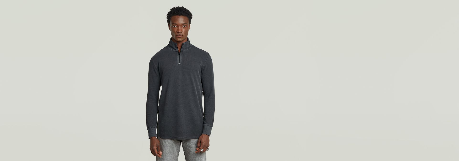 Overdyed Tweeter Half Zip offers a comfortable piece that feels lightweight as a tee with the aesthetics of a sweater. This lighter weight sweater is designed in a relaxed fit and offers a raised collar with a short zipper. The ribbed cuffs make it even more comfortable to wear.