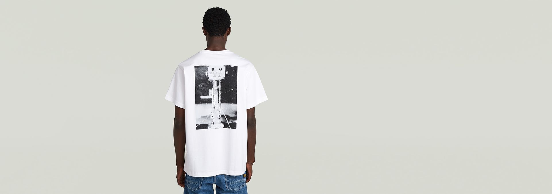 The Back Photo Print Loose T-Shirt offers a relaxed fit with short sleeves and a striking graphic print.