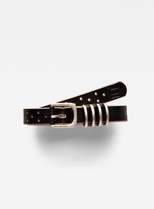 Presented with a punched leather motif and tarnished metal hardware, this sturdy belt will add a tough edge to any outfit. Thanks to the worked pattern, it's universally adjustable for a perfect fit.