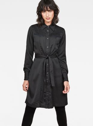 Offering a flattering silhouette and functional detailing, this archive-inspired dress is a great choice for daily style. Smart tailoring and considered construction give a figure-following fit that's big on comfort. Style the neckline, belt and sleeves to make it your own.