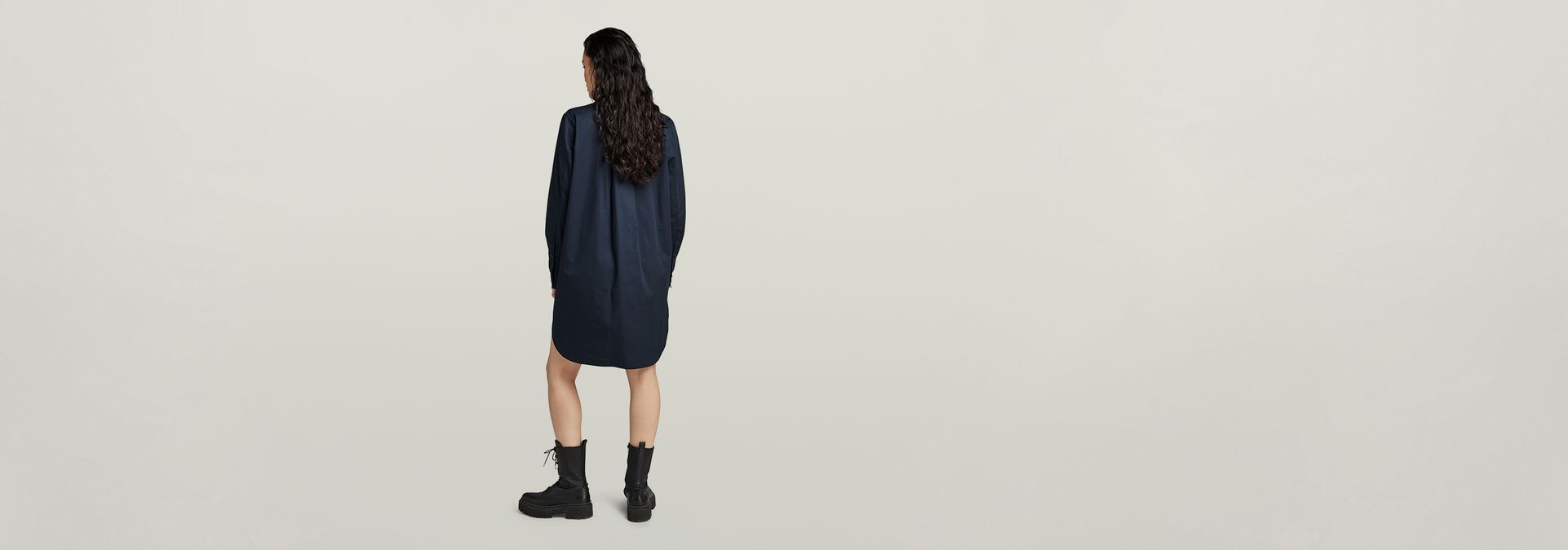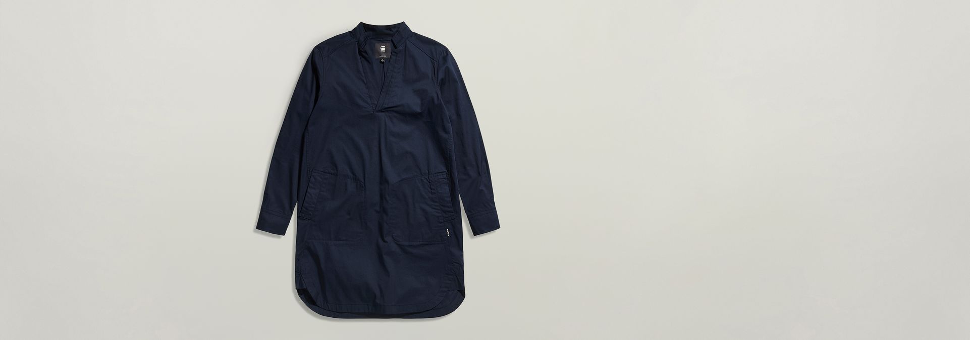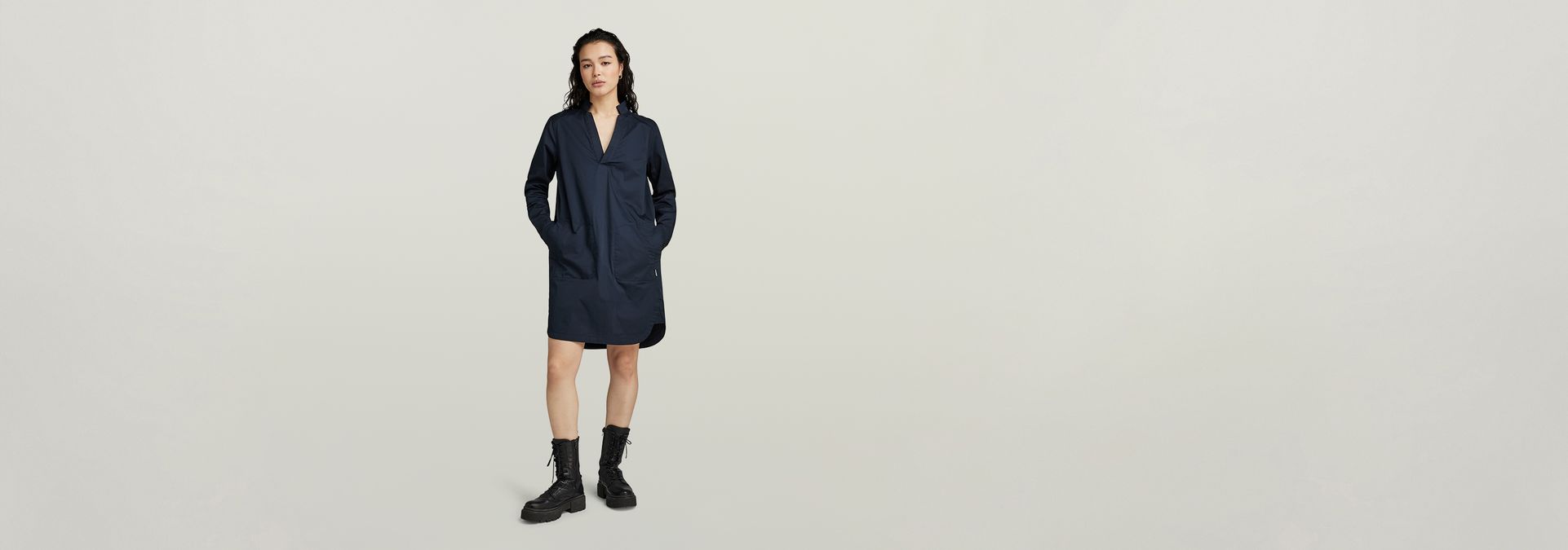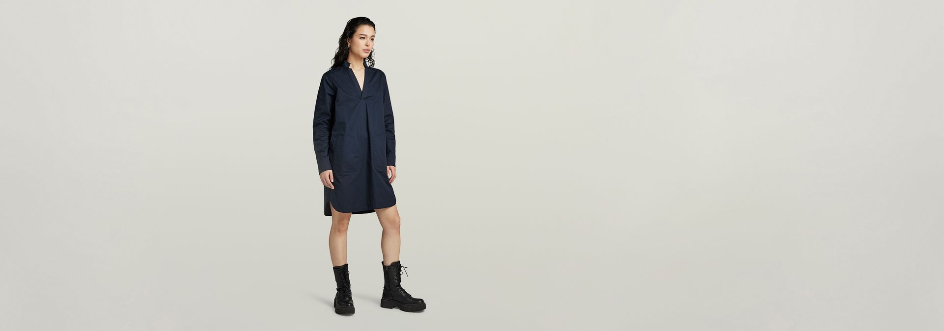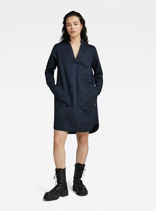 Shirt dress Millery V-neck offers an open placket with a raised collar. At the sides, inset pieces are added to reduce the slit length.