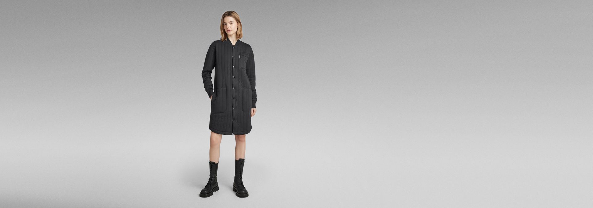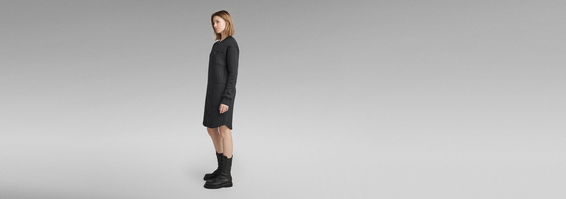 Sweat dress Button Up offers a straight fit in a knee length. Snap buttons are placed along the full length. This dress is finished with ribbed cuffs and a ribbed neckline. A single chest pocket is combined with waist pockets that are caught in the sideseams. The curved hem completes this sweat dress.