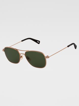 Fine metal frame with a double-bridge and round shaped lenses. The thin temples secure with patented screws.