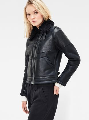 Winter warmth never felt so good. Made of finest shearling, this air force-inspired jacket is the ultimate cover up for when the mercury drops. On the inside it's cozy and warm with thick shearling wool. On the outside, it's finely detailed with tough leather panels and metal hardware. Thanks to its timeless look and flattering silhouette, it goes with almost anything.