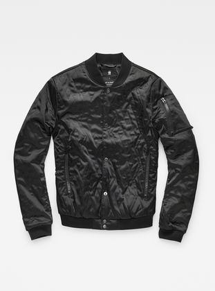 With warm quilting and a slim bomber silhouette, this lightly padded piece is perfect for between layers or between seasons. A zip-up sleeve-pocket adds an air force feel. While ribbed edges and glossy sateen keep things sporty.