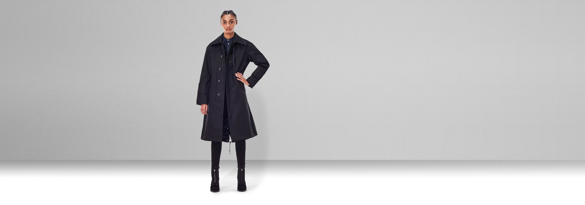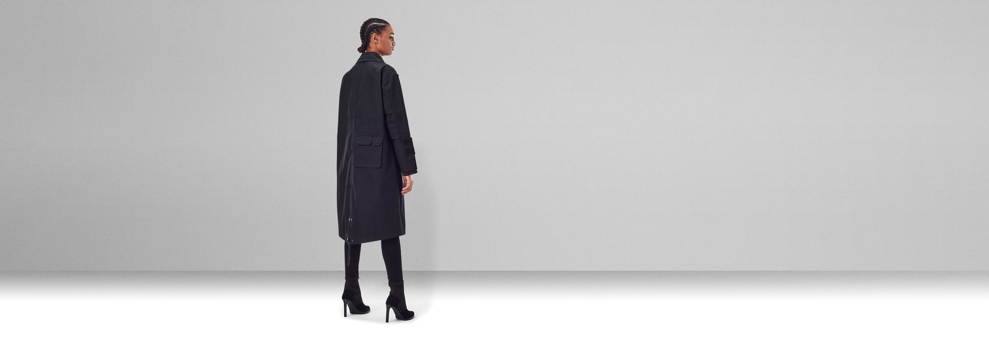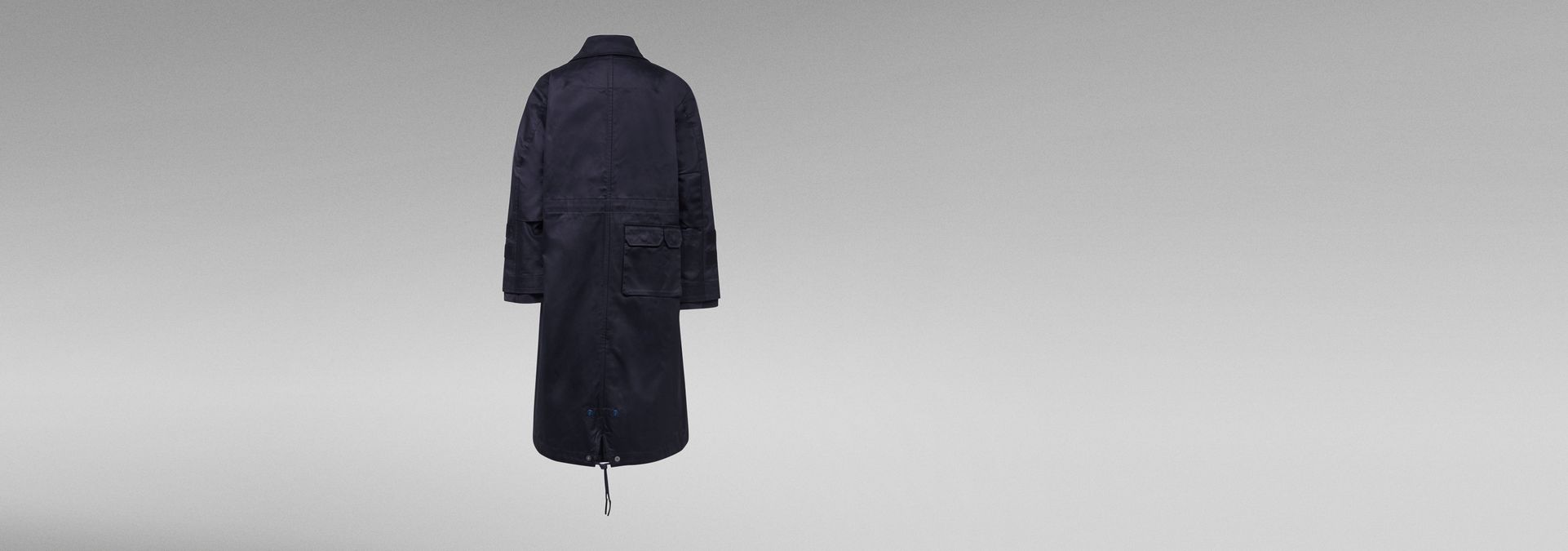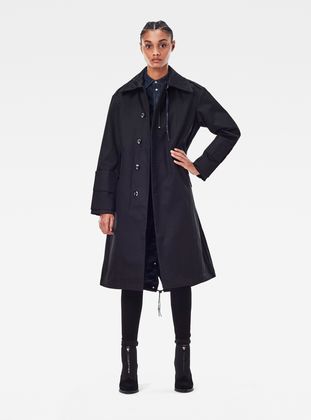 The G-Star Raw Research long parka is designed with a broad collar, showing a stitch down reinforced undercollar. A chest zip pocket has an extended pull cord. This parka offers a hidden zipper, combined with a full button closure. This parka offers shaped sleeves with raw edged inner cuffs. At the lower arms, tabs are applied with a hidden Velcro closure. Waist pockets offer a flap and hidden snaps. At the backside of the hip, two more pockets are patched on. The extended back of this GSRR parka shows a fishtail finish with drawstring and the lined inside offers an adjustable waist.