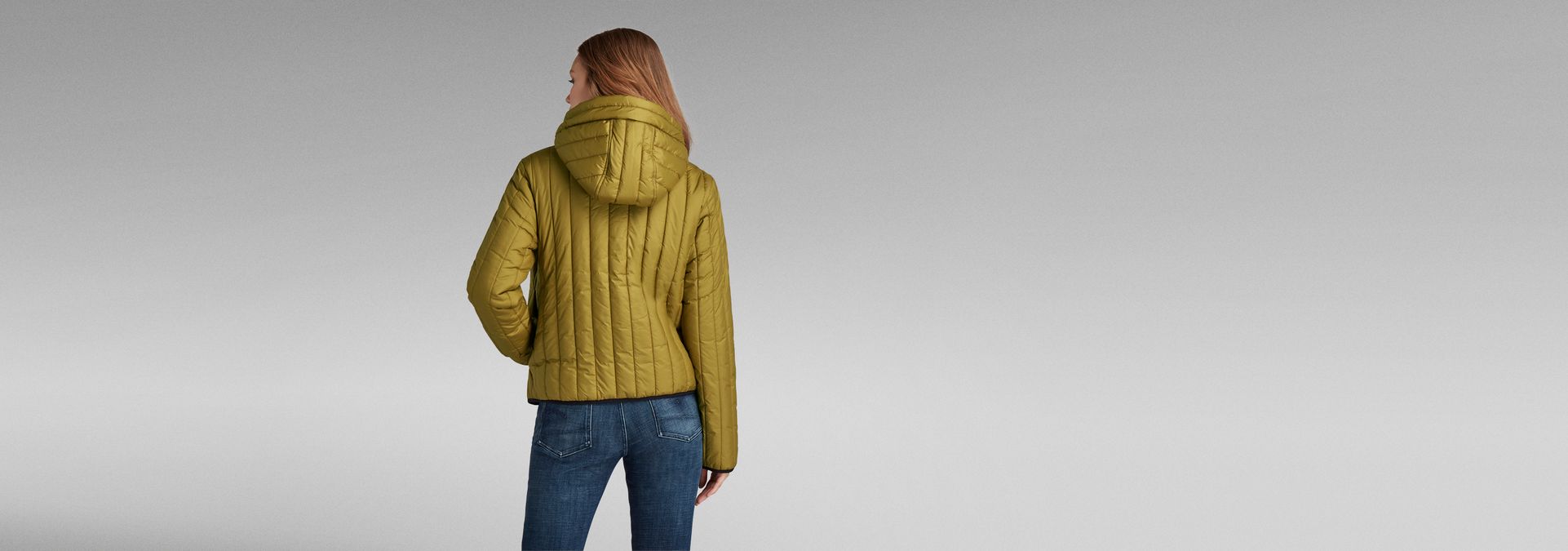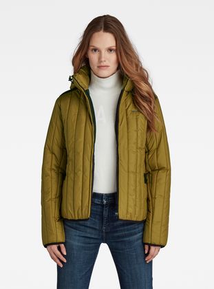 This Meefic vertical quilted jacket is cut from a water repellent fabric, stitched through in a vertical stitch down. The detachable hood offers a high raised front and has puller cords for optimum protection. A broad woven tape indicates the pocket entrance at the waist. Also the front shoulders of this padded jacket show a woven insert. An elasticated binding at the sleeves and bottom edge complete this quilted jacket.