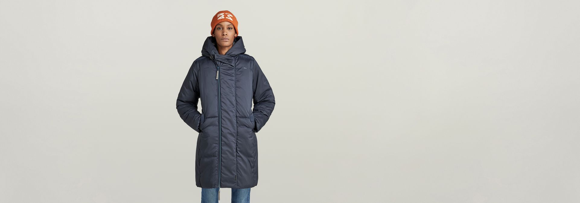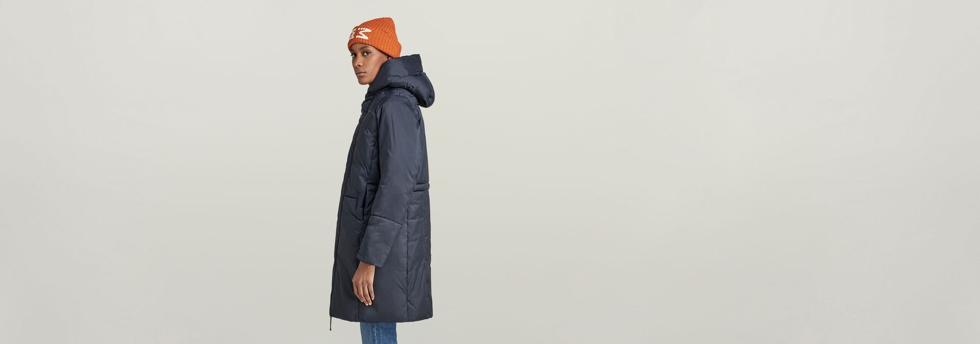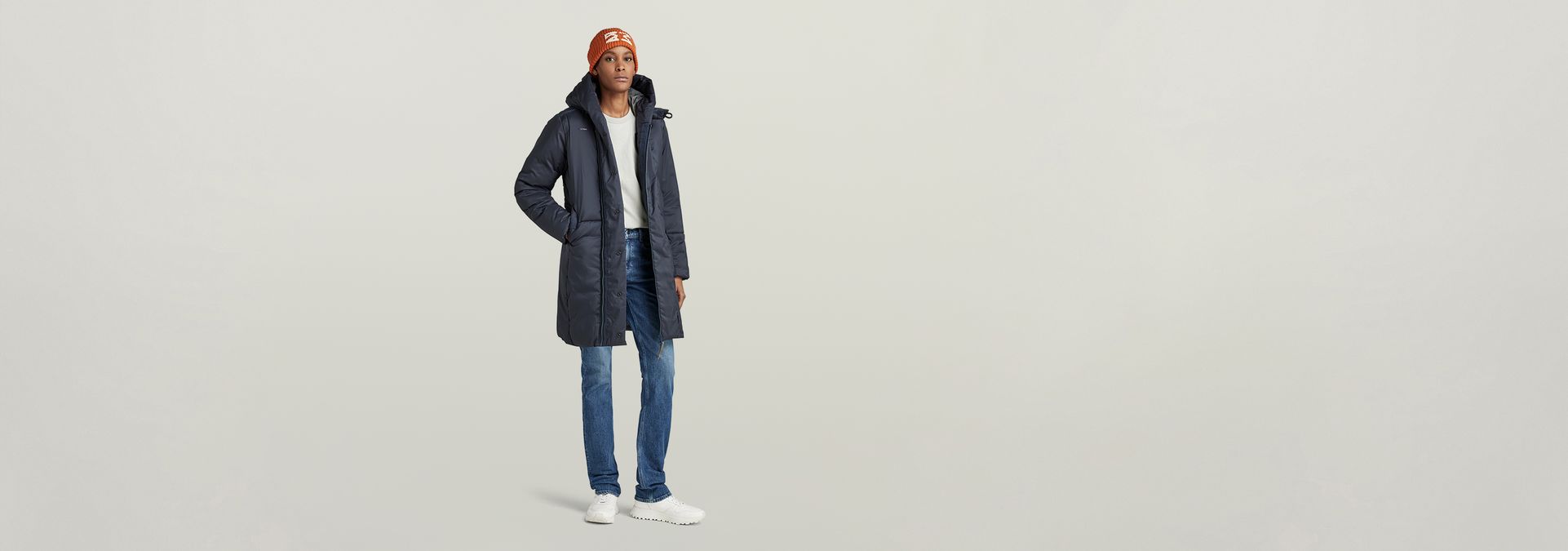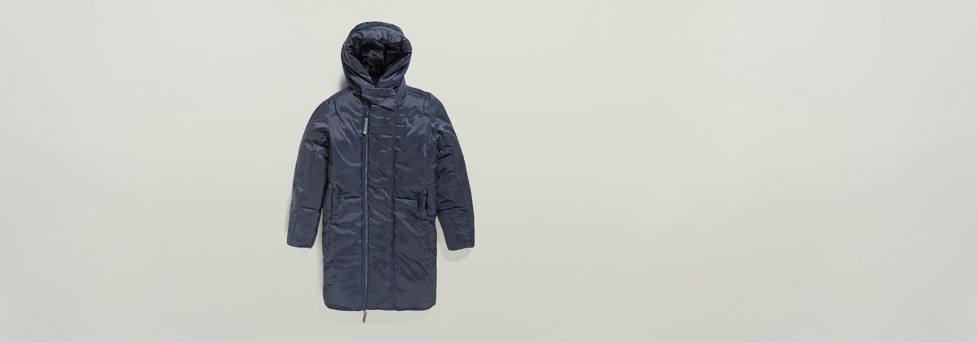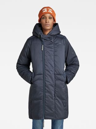 This G-Whistler padded parka is cut from a water repellent fabric, offering a comfortable hood with a broad peak. The front zipper closure is covered by a panel with snaps to block out the wind. The added tab at the top secures the front neck for optimum protection. Also the waist is adjustable, as there is a puller cord hidden inside. This padded parka offers pockets at the waist as well as inside. Woven tape at the shoulder and pocket entrance add detail to the front, while the upper back shows a strap.
