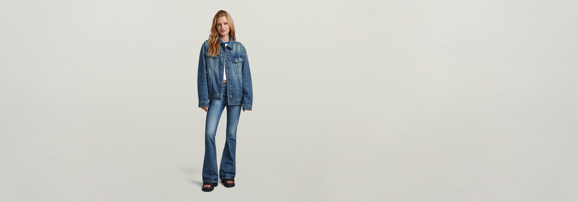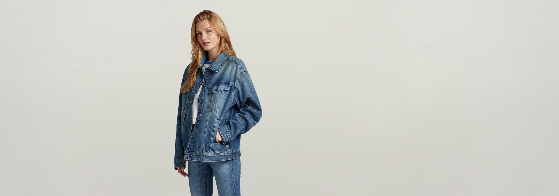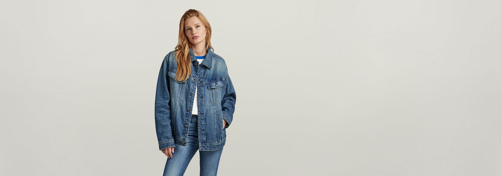 This oversized Western Evergreen jacket is a classic constructed denim jacket, cut in a loose oversized fit.