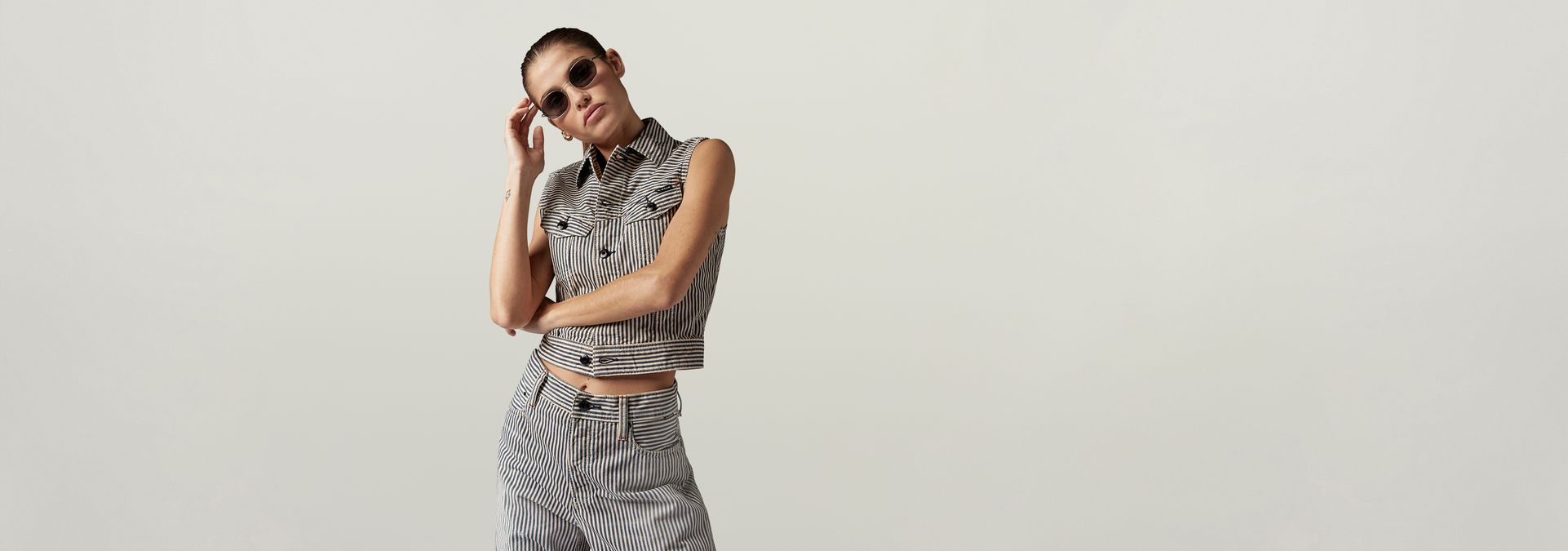 This 9 oz fabric features a unique hickory stripe pattern. The blue yarns are dyed in indigo in the warp by using a rope dye technique. Rope dyeing consists of twisting the yarns into a rope that is then quickly dipped into indigo baths. The short dyeing time does not allow the indigo to fully penetrate the fibers and allows for a faded effect.