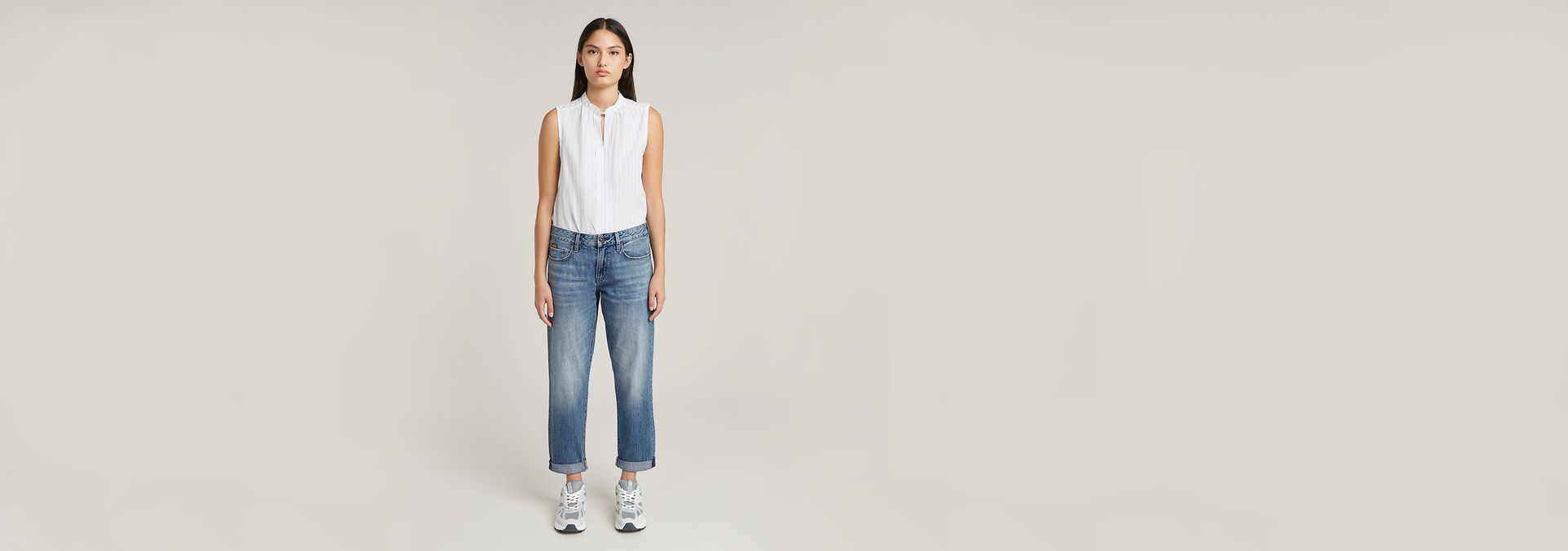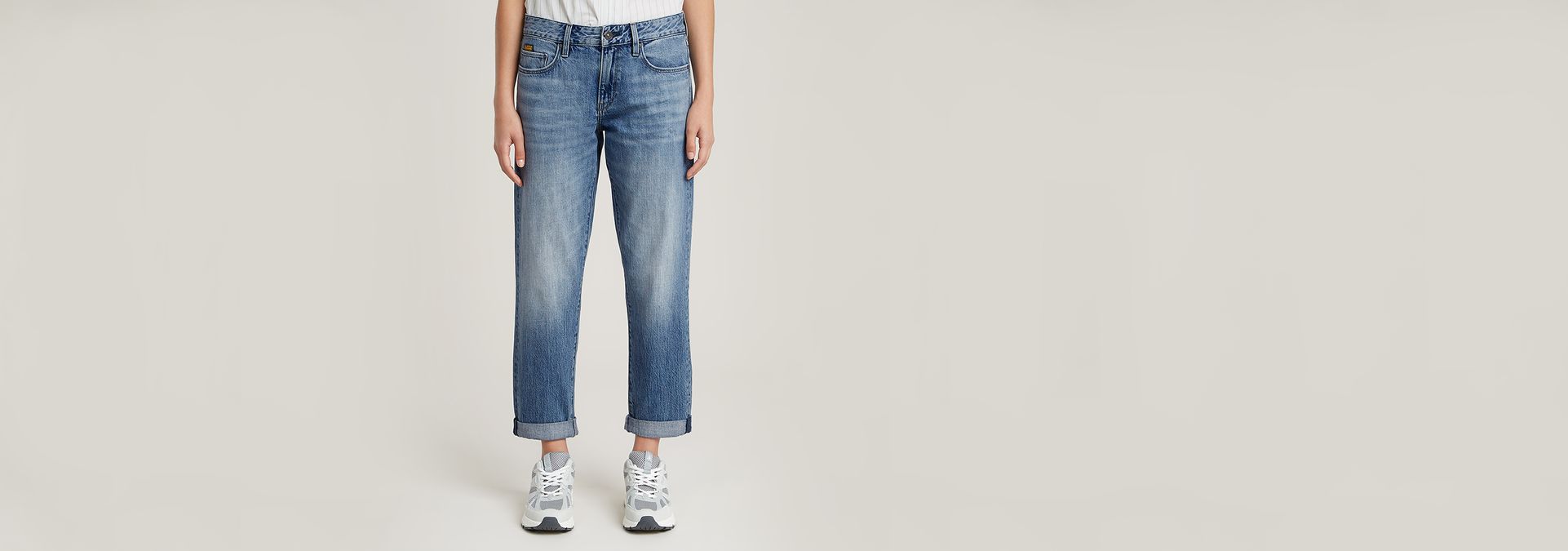 The Kate has a boyfriend fit with a low waist and dropped crotch. Featuring relaxed leg and folded-up hem, it makes for a perfect casual look.
