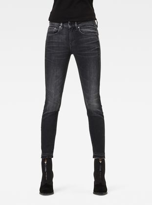 The G-Star 3301 mid skinny jeans feature a classic 5-pocket construction inspired by authentic Western jeans. This ankle length version offers a ripped leg hem finish.