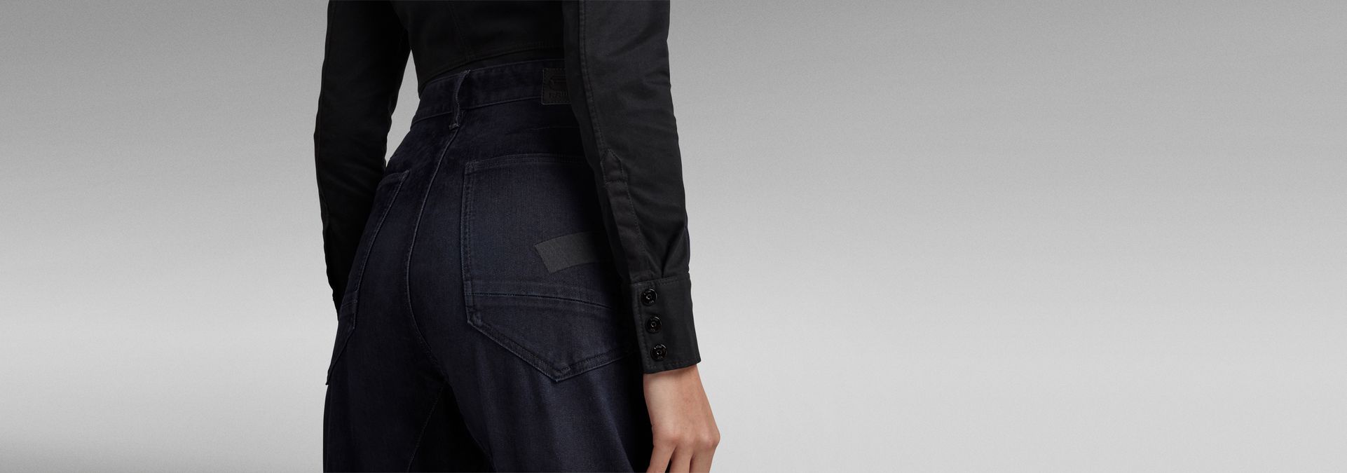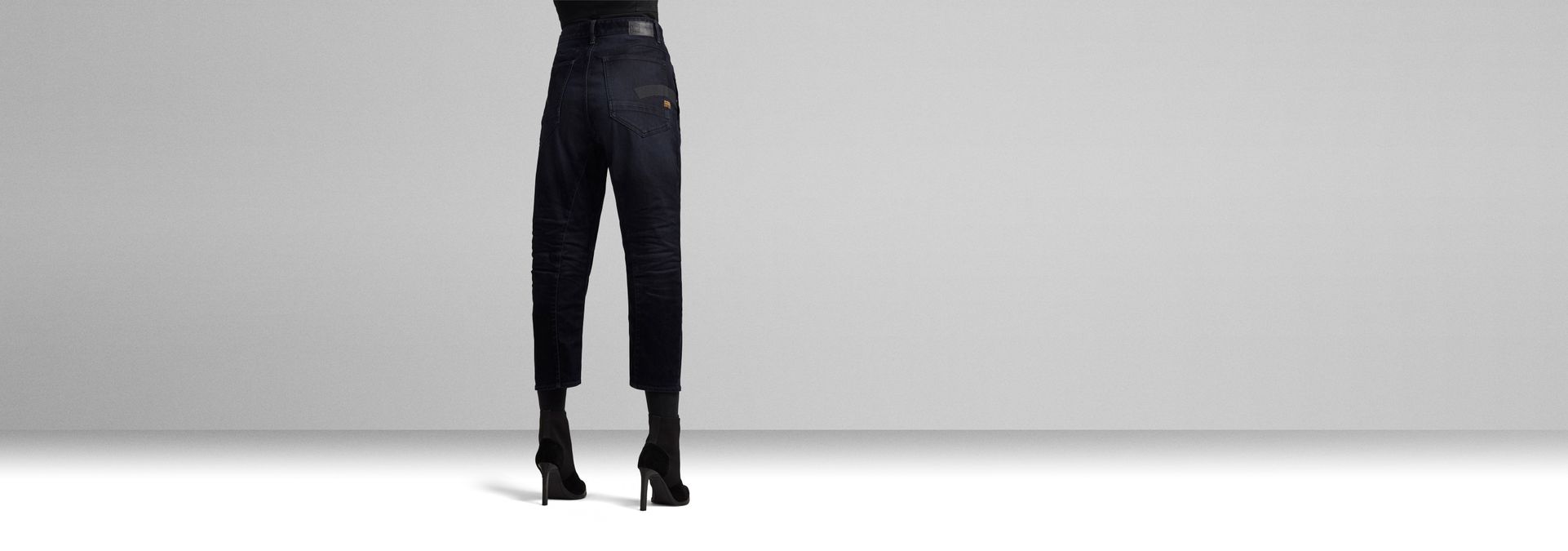 Jeans C-Staq 3D jeans offers a high waist on a boyfriend fit with a small dropped crotch. Design in a cropped length with shaped darts at the inner knee, creating the ´O´ leg effect we know from the G-Star Type C jeans. Chino pockets at the side refer to a D-Staq jeans.