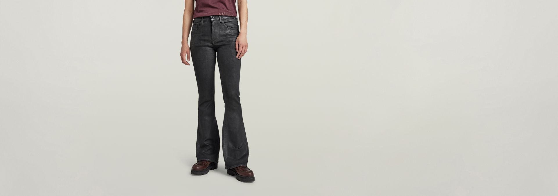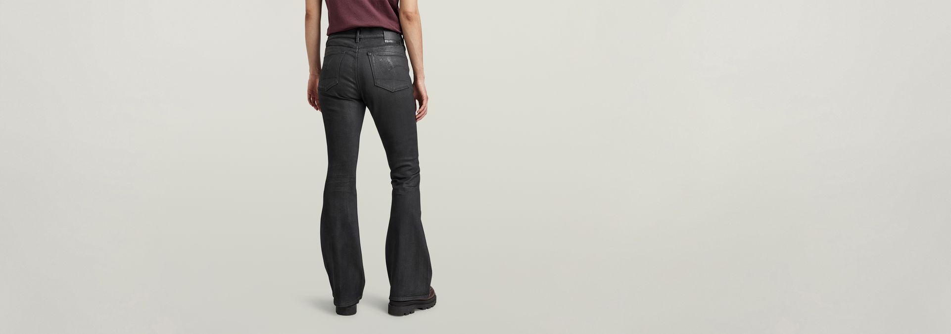 The G-Star 3301 high flare jeans feature a classic 5-pocket construction inspired by authentic Western jeans. The high waist offers a tight fit around the hips and thighs and proceeds in wider fit from the knee down. These skinny flare jeans offer a zip fly.