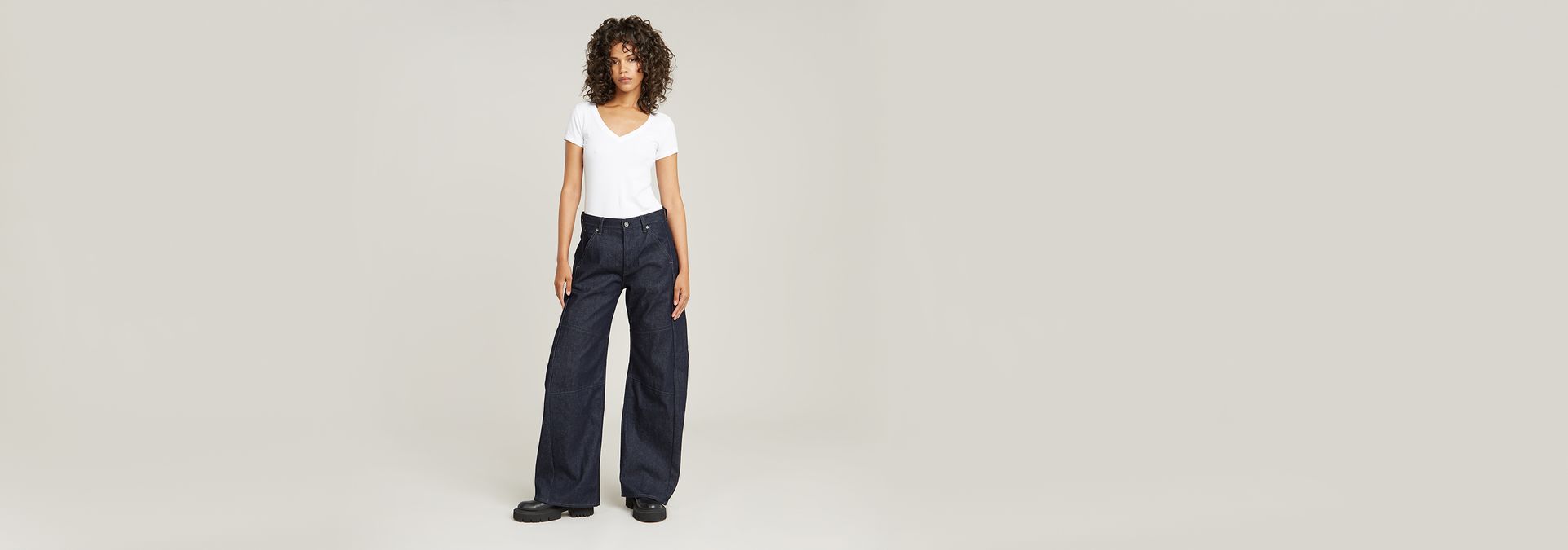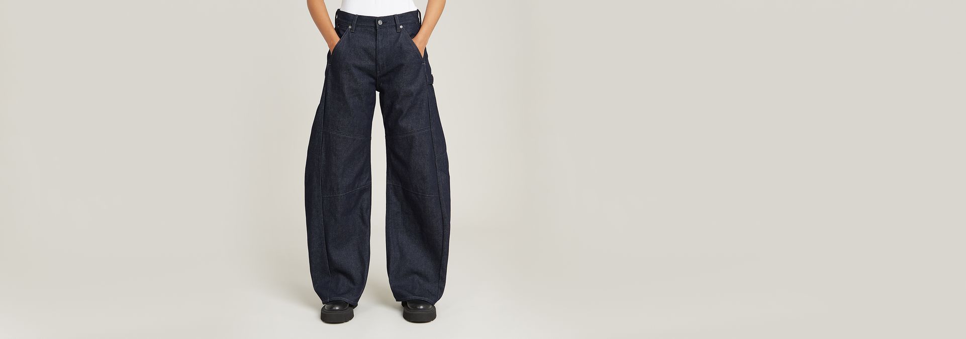 The Bowey 3D jean is part of our Anatomic Denim offer. A low-rise fit with a barrel leg. Strategically placed darts around the knee create a bow-leg shape, adding extra volume for a more relaxed feel. Utilitarian elements like a tool loop complete the look.