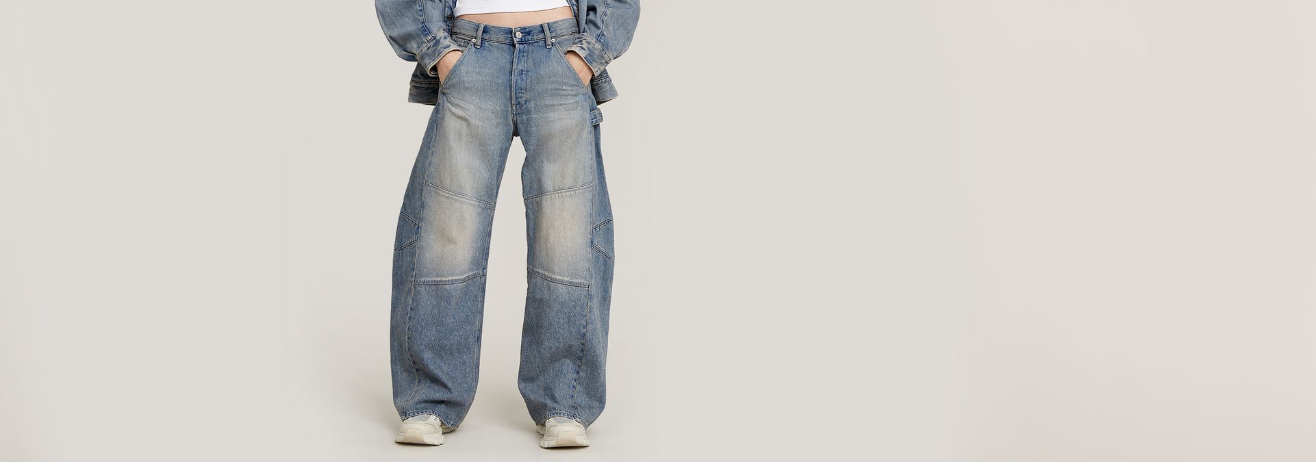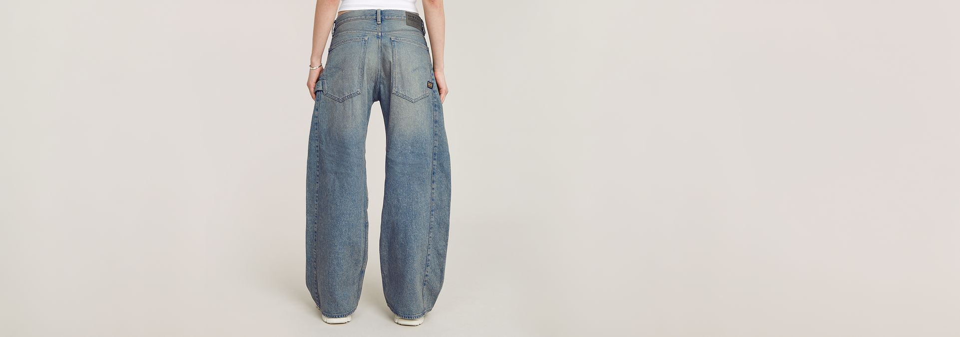 The Bowey 3D jean is part of our Anatomic Denim offer. A low-rise fit with a barrel leg. Strategically placed darts around the knee create a bow-leg shape, adding extra volume for a more relaxed feel. Utilitarian elements like a tool loop complete the look.