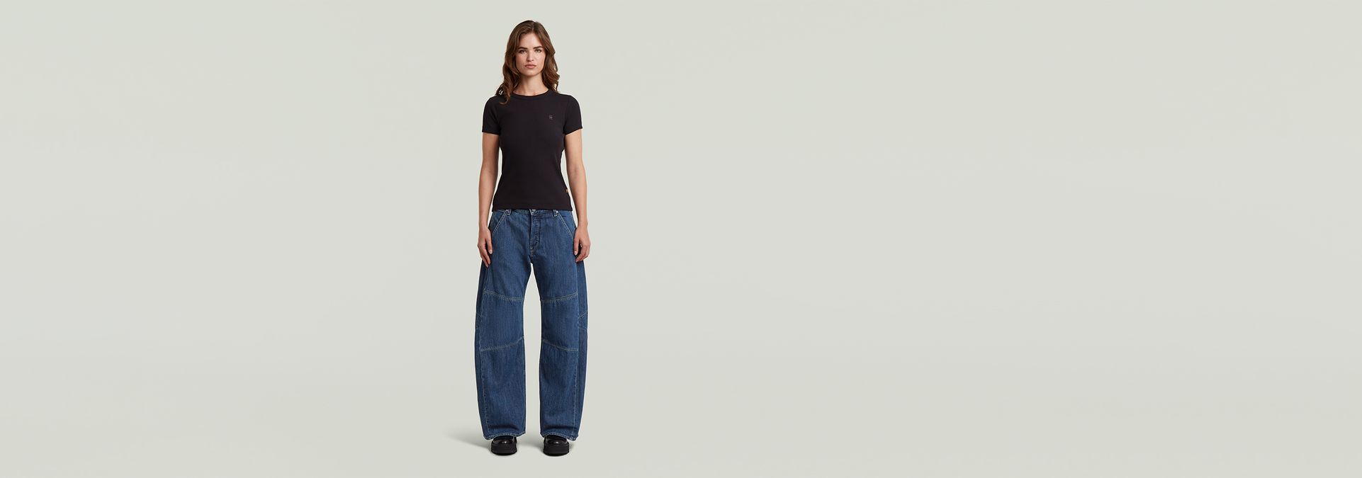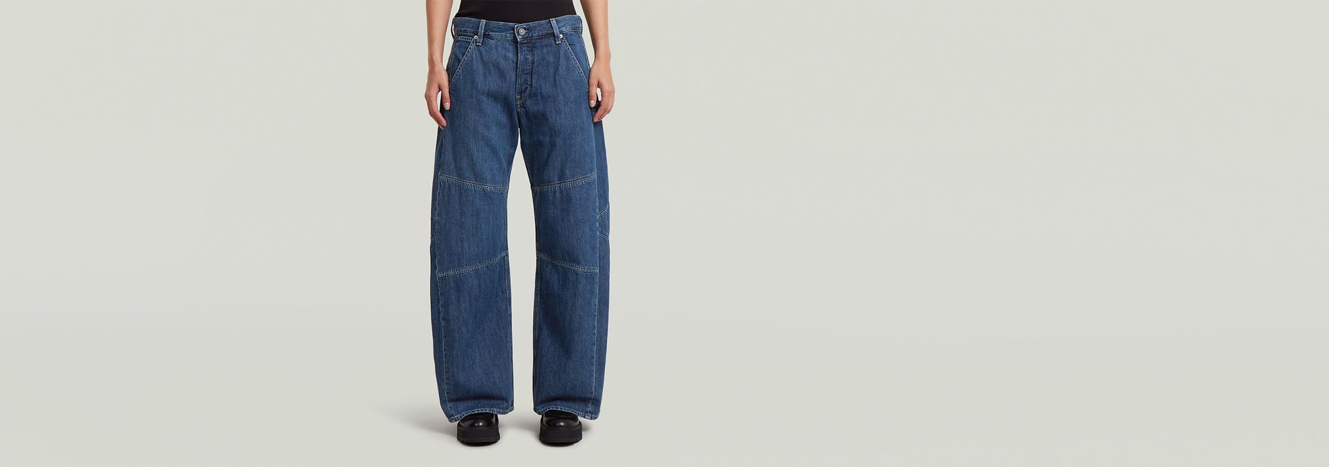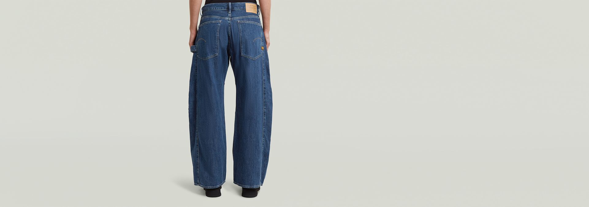 The Bowey 3D jean is part of our Anatomic Denim offer. A low-rise fit with a barrel leg. Strategically placed darts around the knee create a bow-leg shape, adding extra volume for a more relaxed feel. Utilitarian elements like a tool loop complete the look.