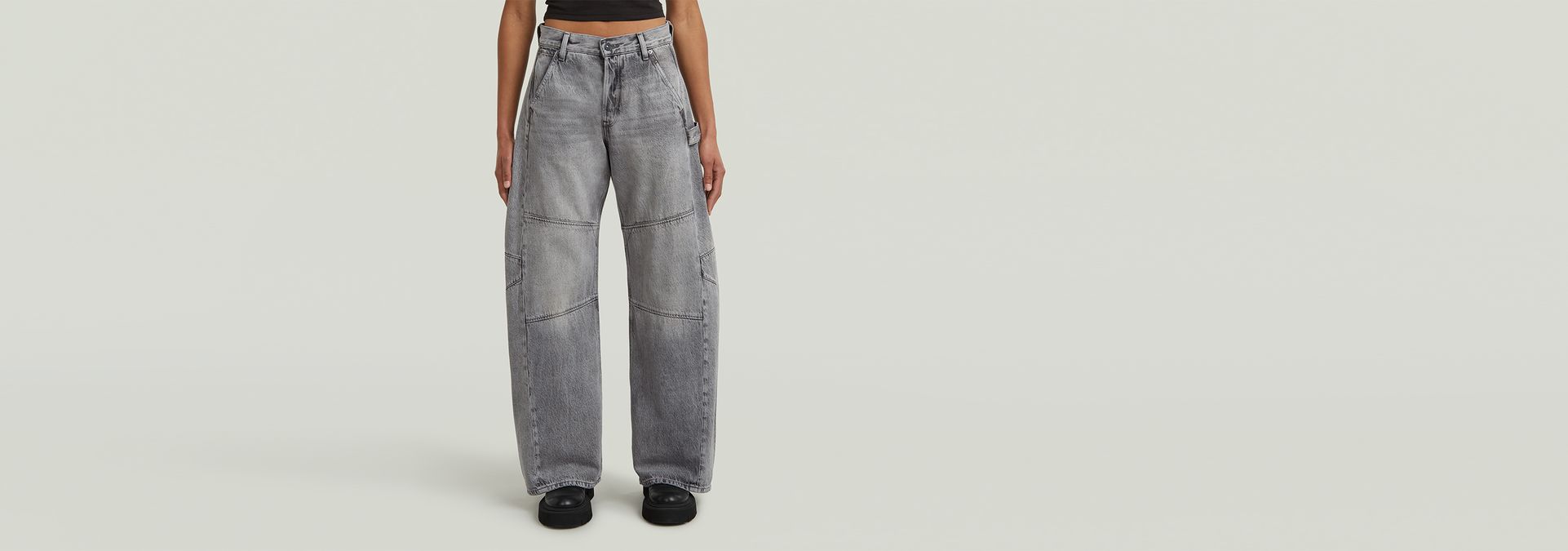 The Bowey 3D jean is part of our Anatomic Denim offer. A low-rise fit with a barrel leg. Strategically placed darts around the knee create a bow-leg shape, adding extra volume for a more relaxed feel. Utilitarian elements like a tool loop complete the look.