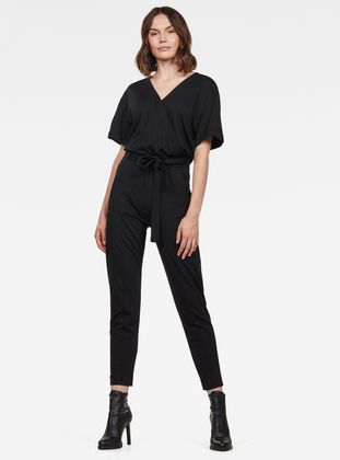 Combining an easy loose fit with the strong silhouette of a combat kimono wrap top, this Ingot loose jumpsuit is versatile enough for day and night. Cut for a flattering silhouette in stretch jersey that feels great to wear. An interesting mix of classy feminine and strong military gives this jumpsuit attitude.