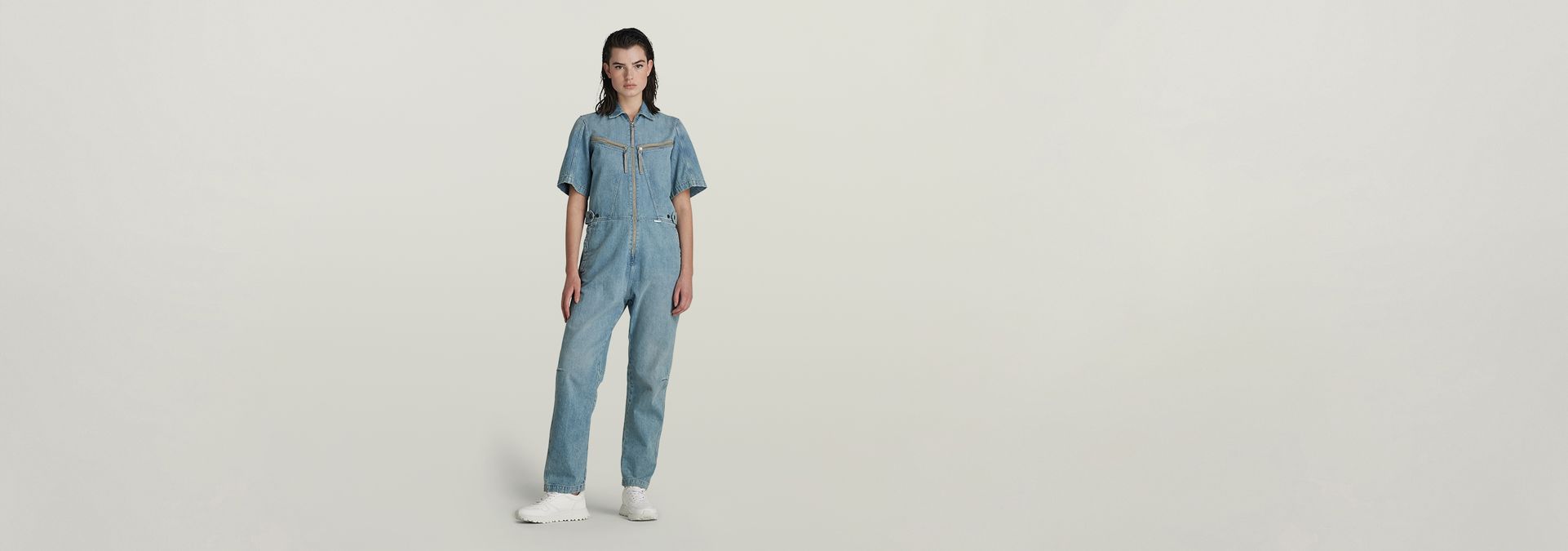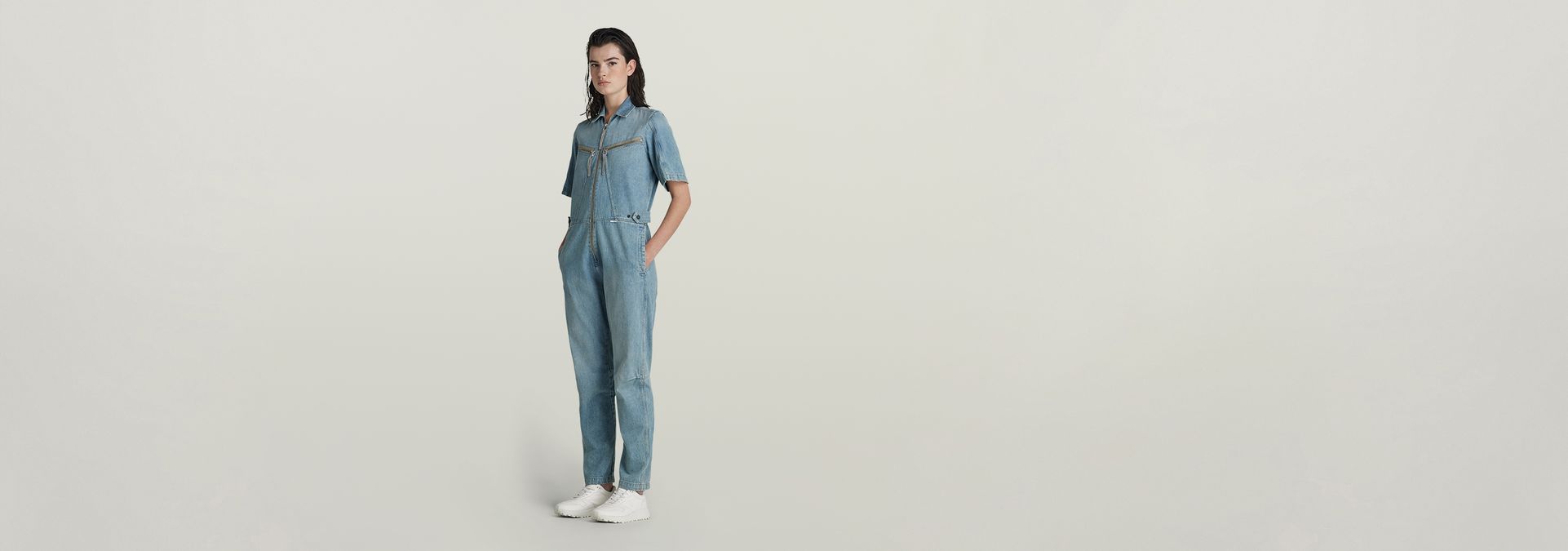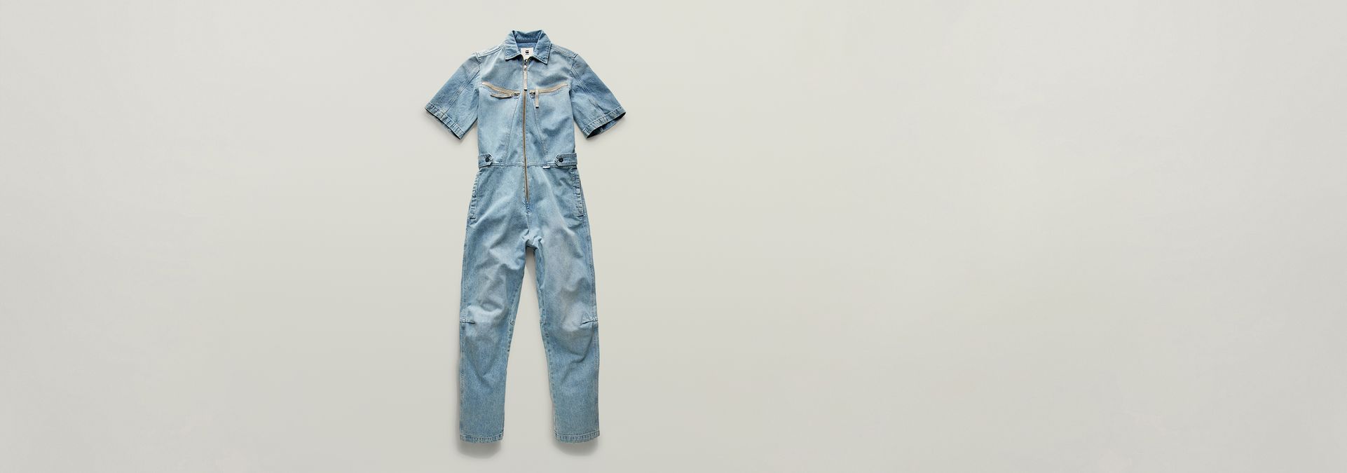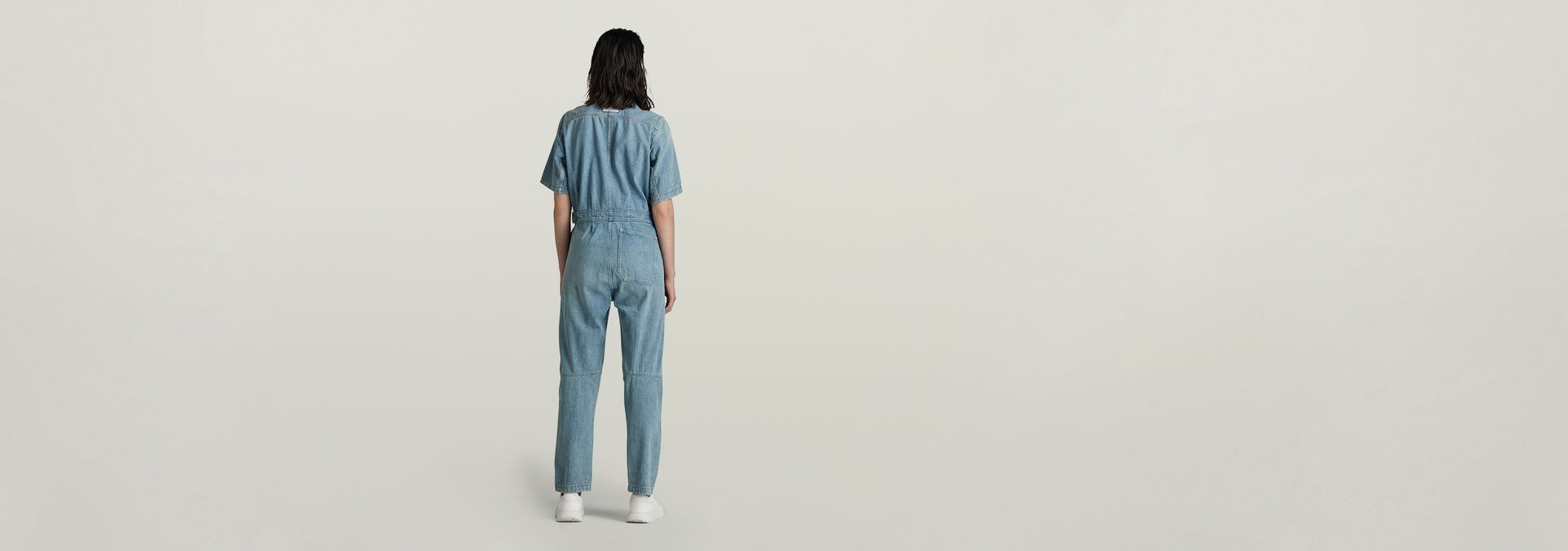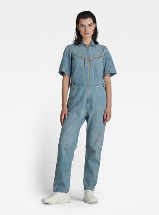 Jumpsuit Flight is designed in a straight Fit and offers deep pockets with a zip closure at the chest. By adjusting the snap buttons on the waist tape, a tighter waistline can be created. This overall has a front zipper with woven tab. Pockets with a hidden snap closure are added to the waist and the back offers a single back pocket. Pleats caught in the side seam add shape to the knees of this denim jumpsuit.