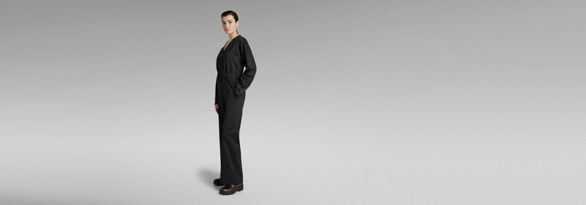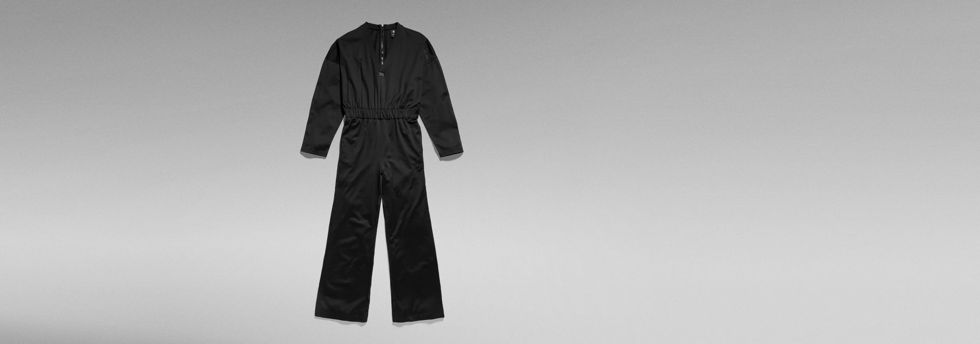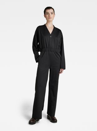 Jumpsuit Adjustable Leg is designed in a straight fit. The zipper at the back allows for an easy access. This jersey suit offers adjustability in leg length. By pulling the drawcord at the inner leg, a gather effect can be created which results in a reduced leg length. Pockets at the side seams come in handy. The graphic print at the front shoulder makes it complete.