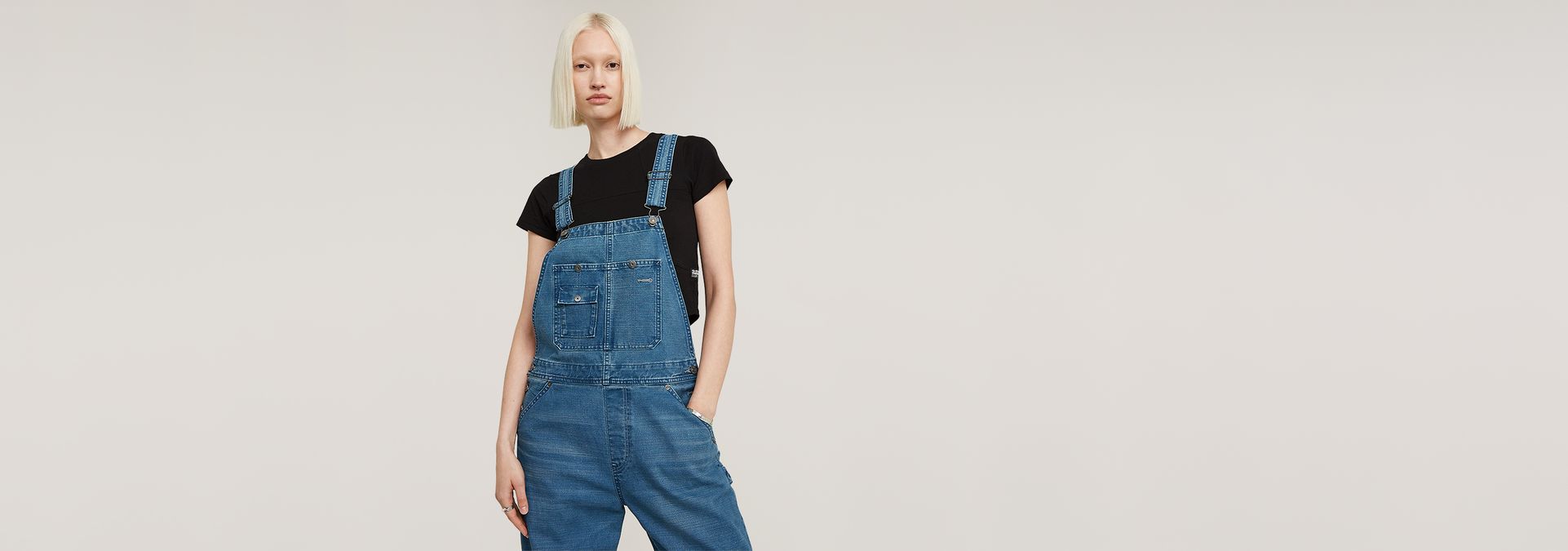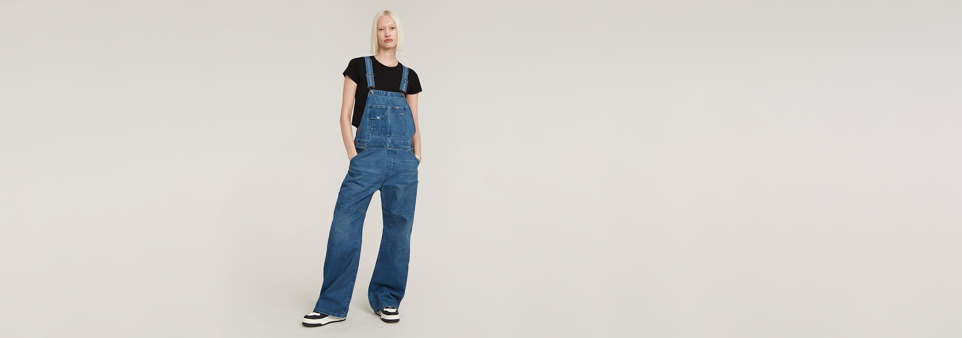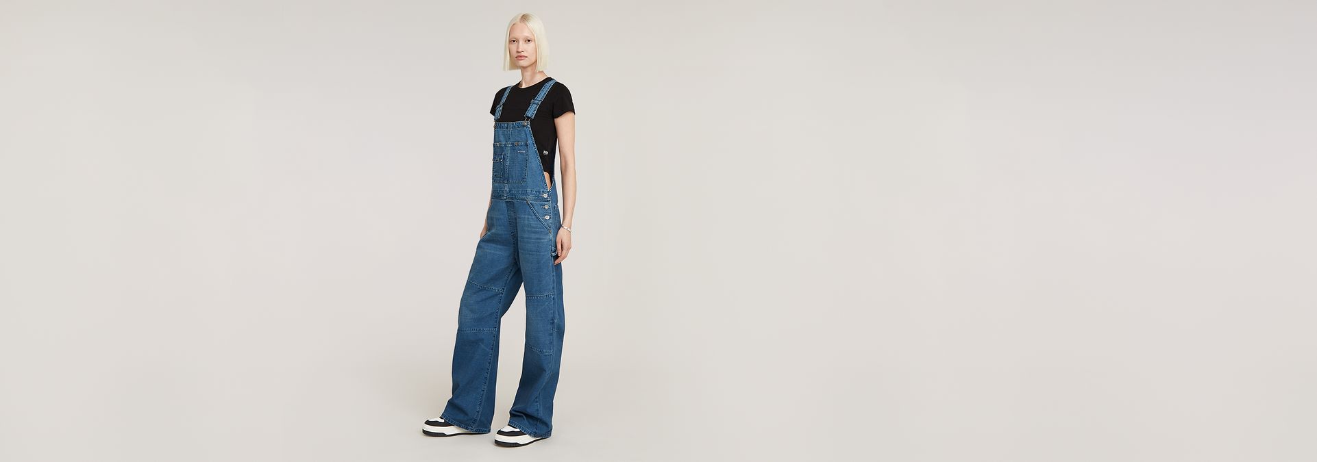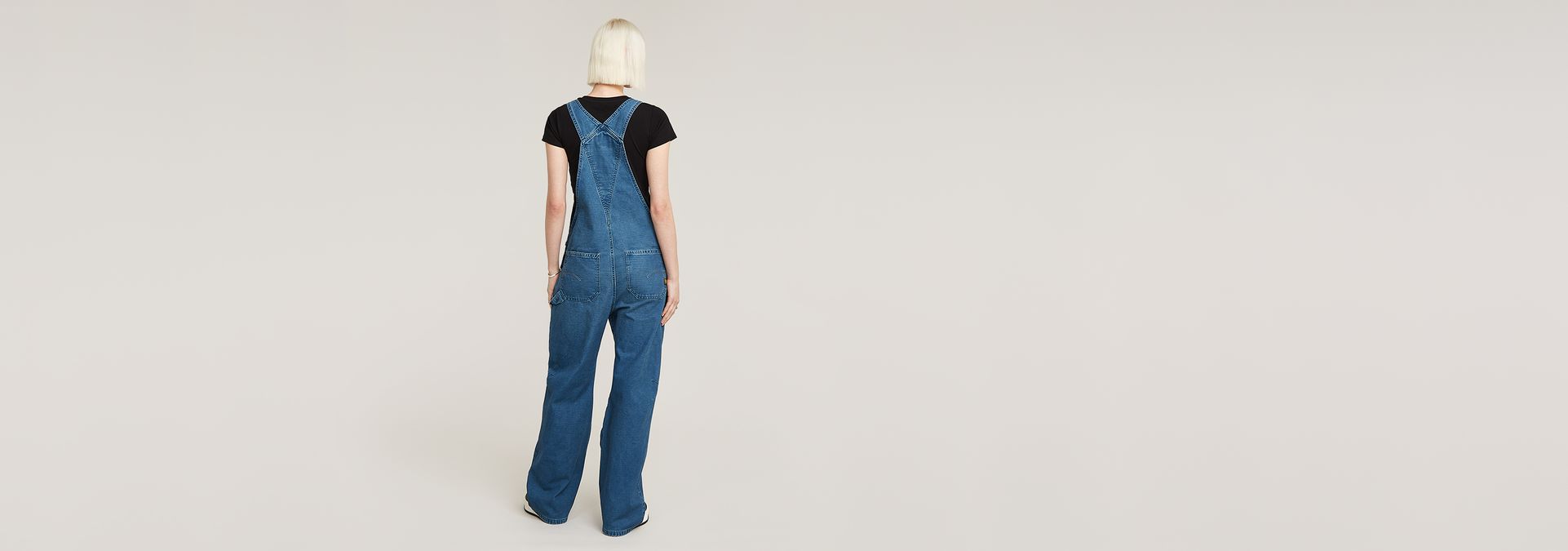 Overall Bowey 3D Carpenter combines shank buttons at the side with suspender shoulder straps for an easy entrance. A chest pocket is placed at the bib, where an addition flap pocket is added. Aside inset pockets this loose fit dungaree also offers back pockets, a tool loop and knee pads.