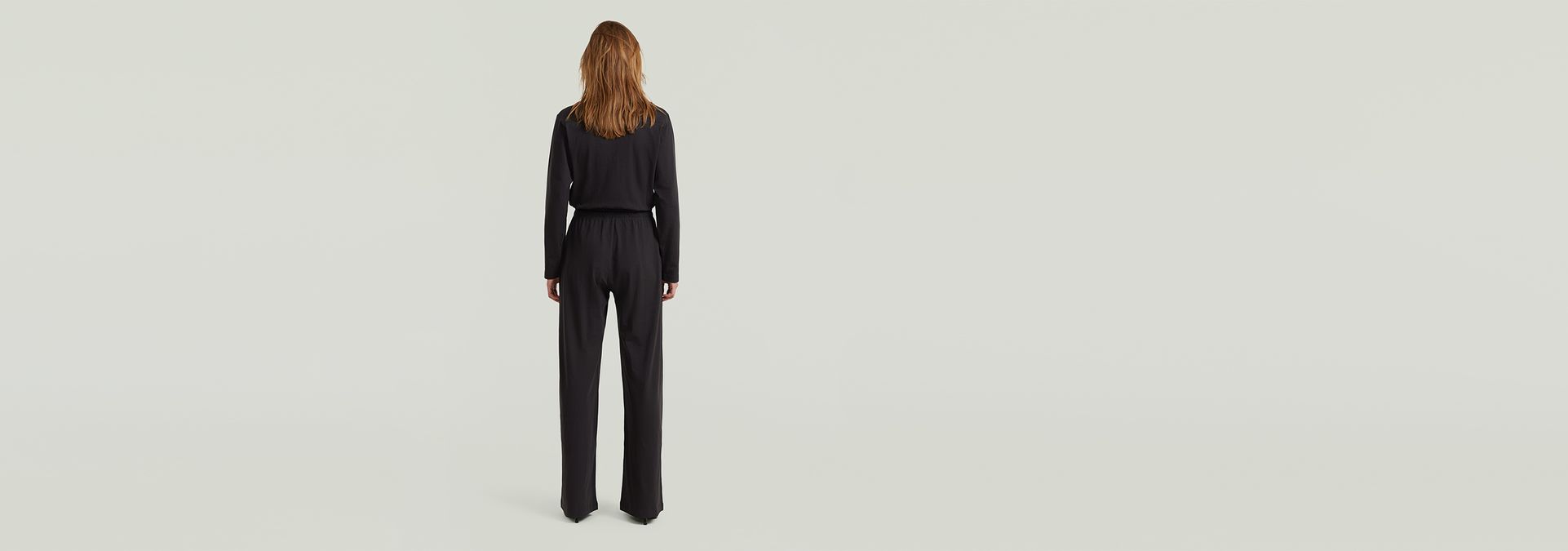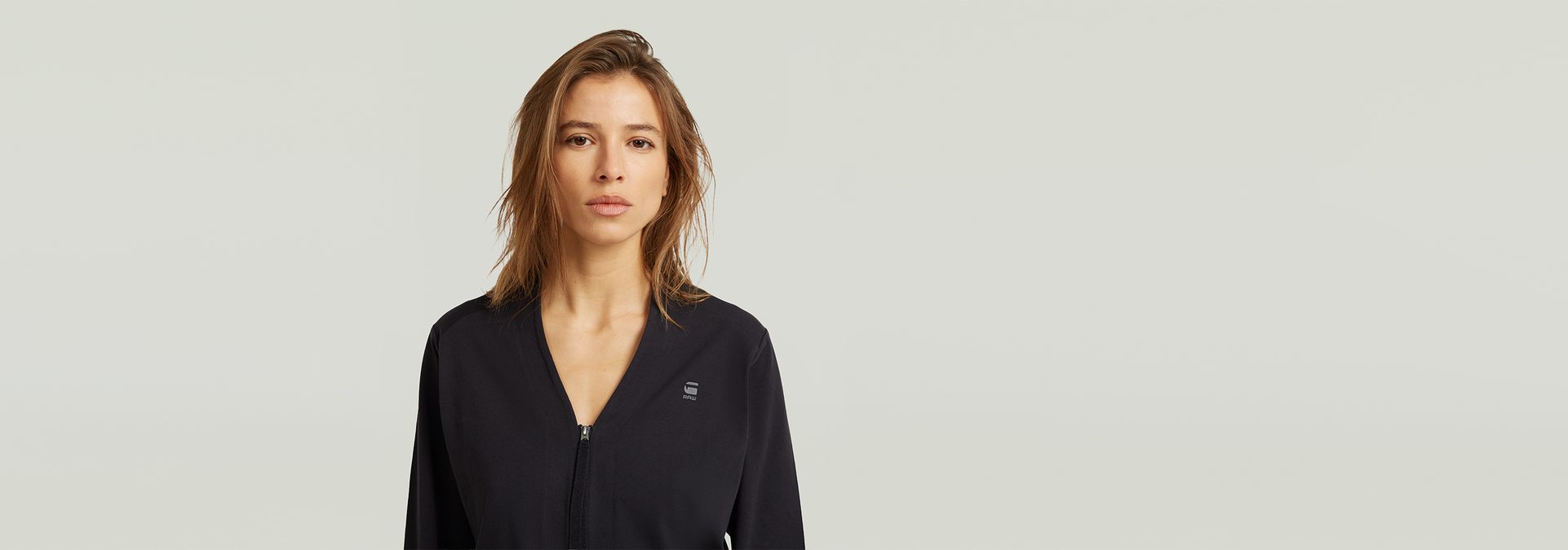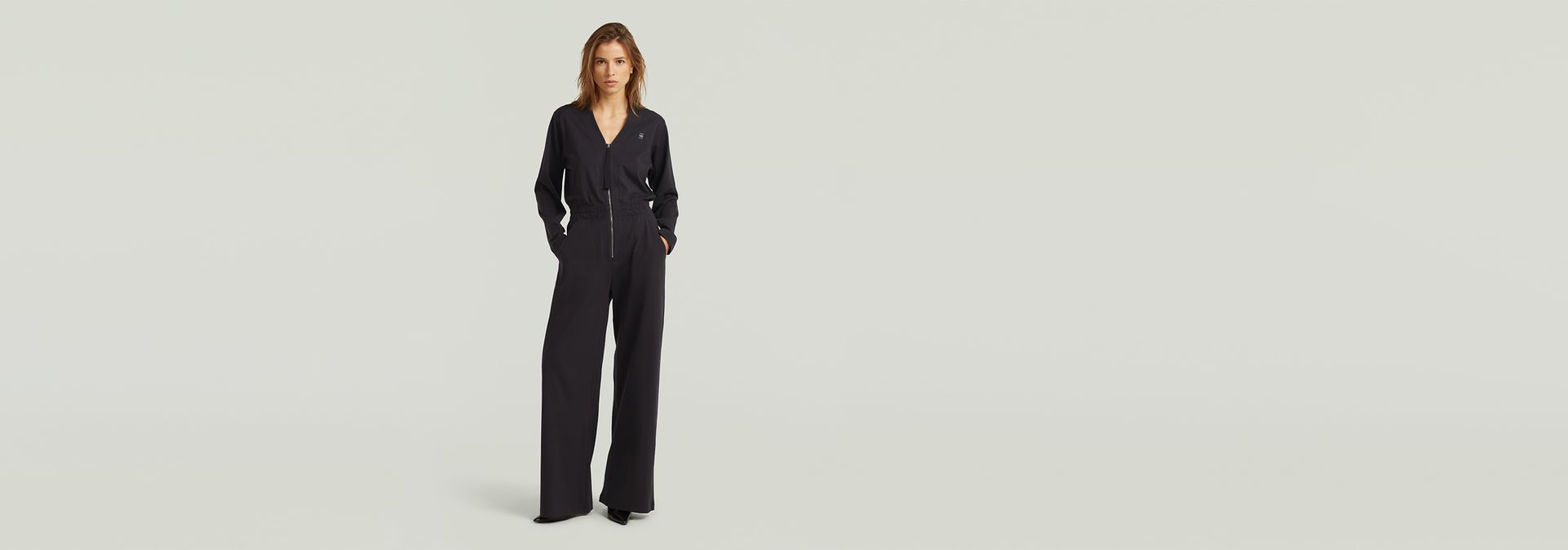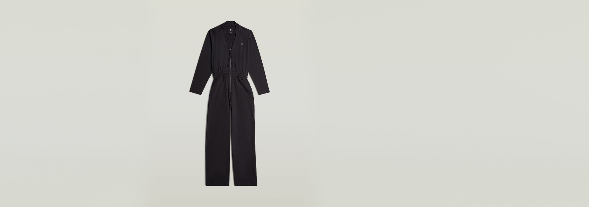 The Track Jumpsuit Long Sleeve combines a sleek design with functional details, featuring a zip closure and a stand-up collar.