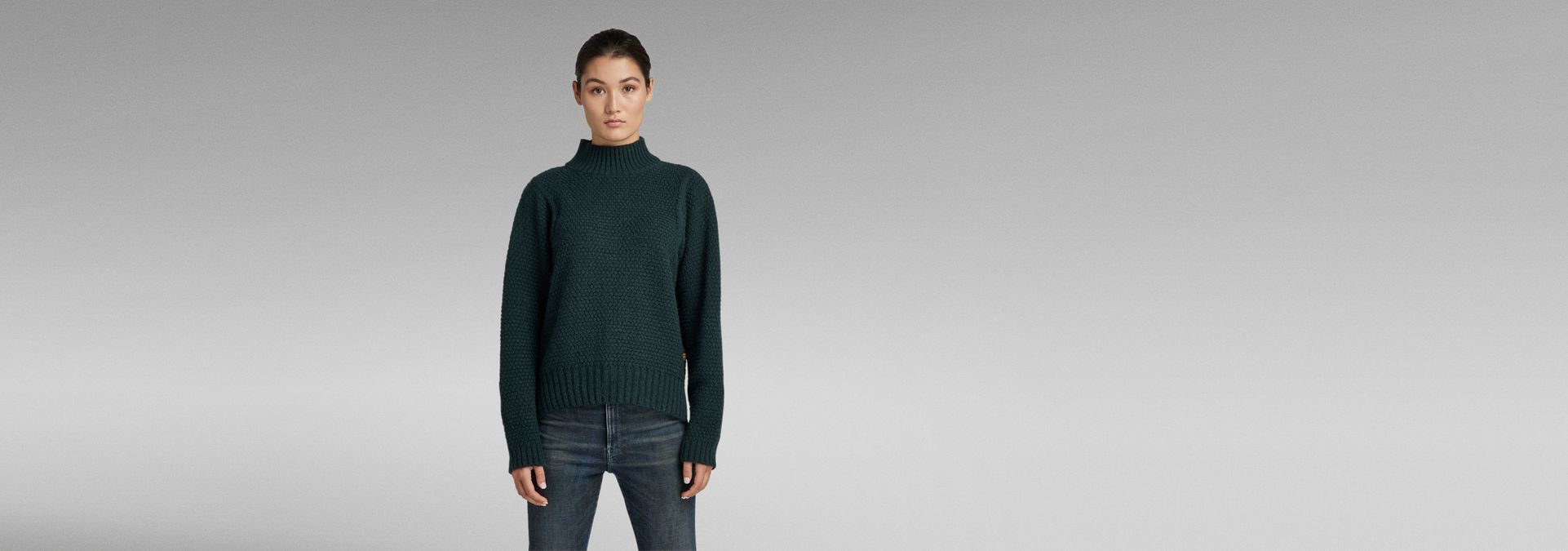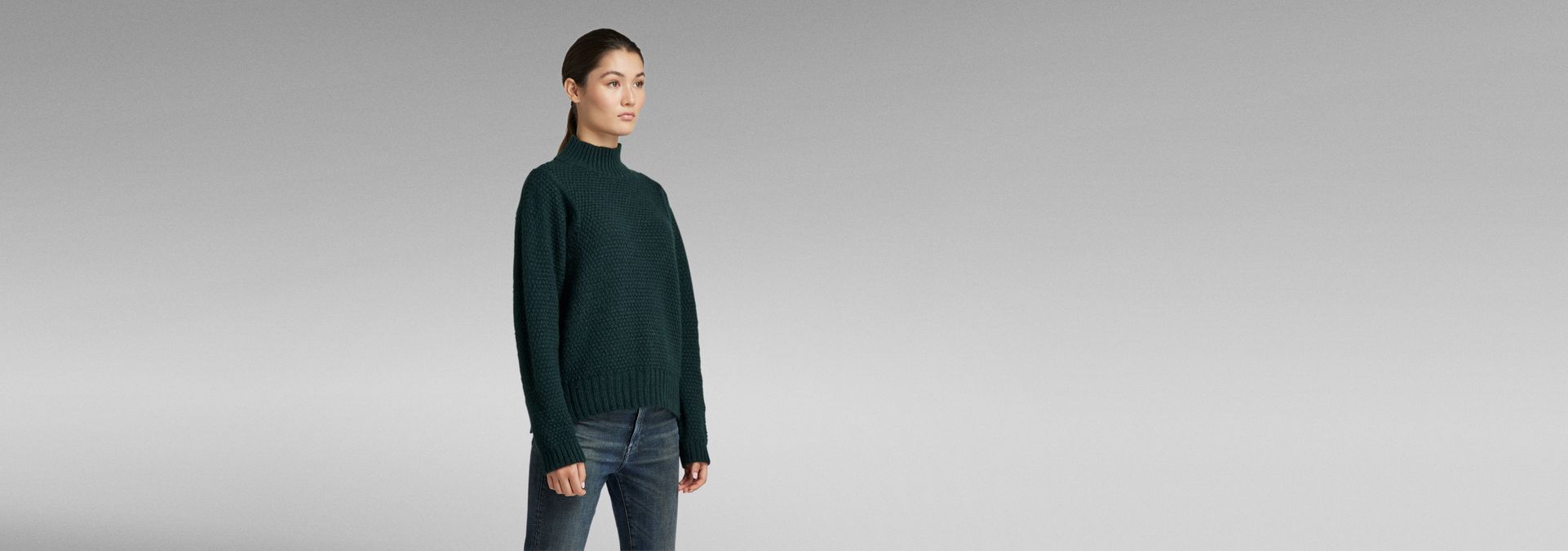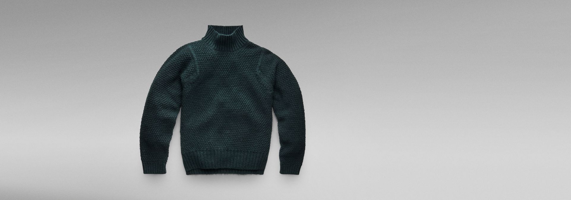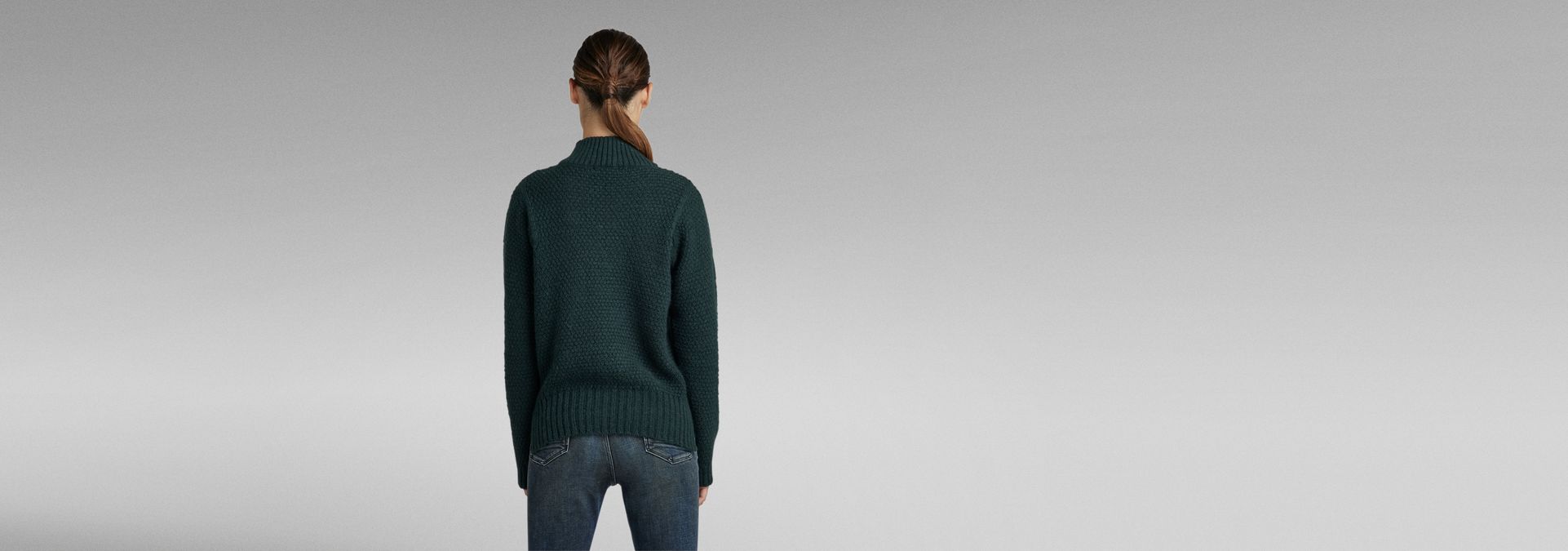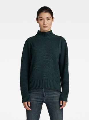 Knitted sweater Structured Turtle is designed in a straight fit and shows a moss stitch structure. The sleeves and waist are finished with a ribbed edge. Side slits at the waist complete it.