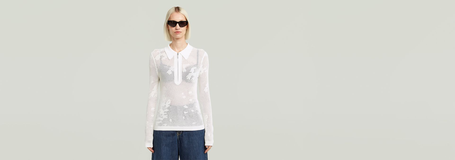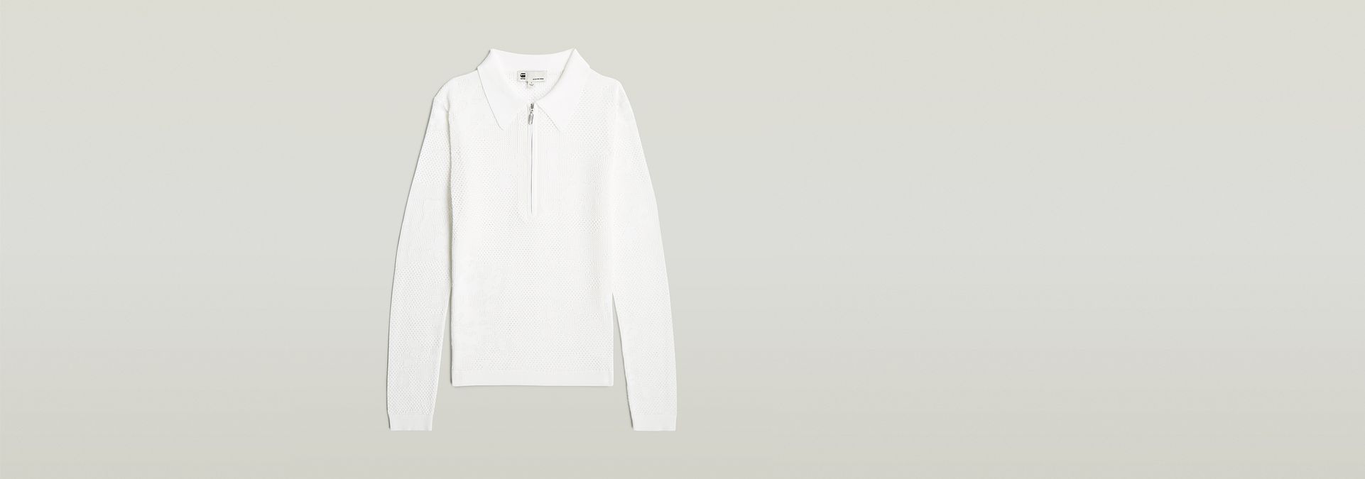The Pointelle Slim Polo Knit features a sleek slim fit with a zip closure, offering a modern twist to classic knitwear.
