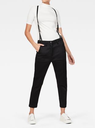 The Bronson is the signature G-Star RAW chino. Presented in stretchy denim, this relaxed version features a smart, tapered cut, and wide pocket-reinforcements for a little extra toughness. Ironed pleats make them smart enough for work and play. Thank to removable braces, they offer plenty of styling options.