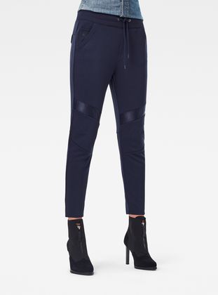 Soft sateen panels are placed just above the knees of this Motac 3D tapered cropped sweatpant. Also the back pocket flap is created out of this material. This sweatpant is designed with an elastic waist and an integrated drawstring. The added seams at the lower leg give shape to this style.