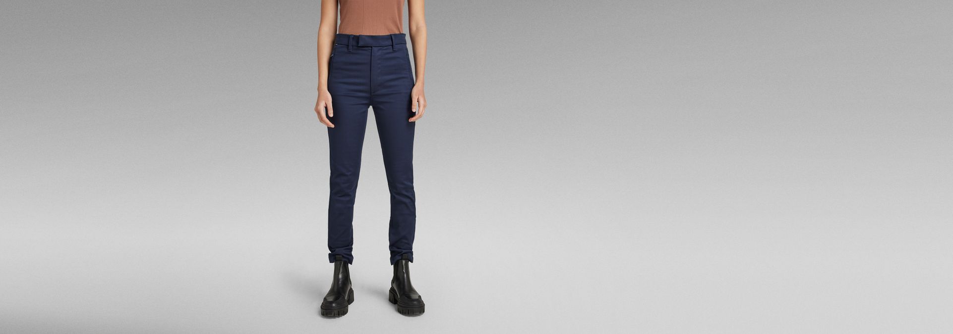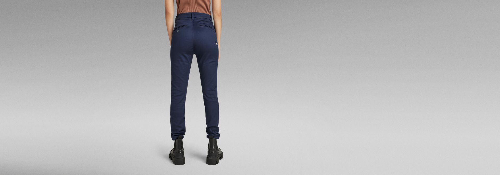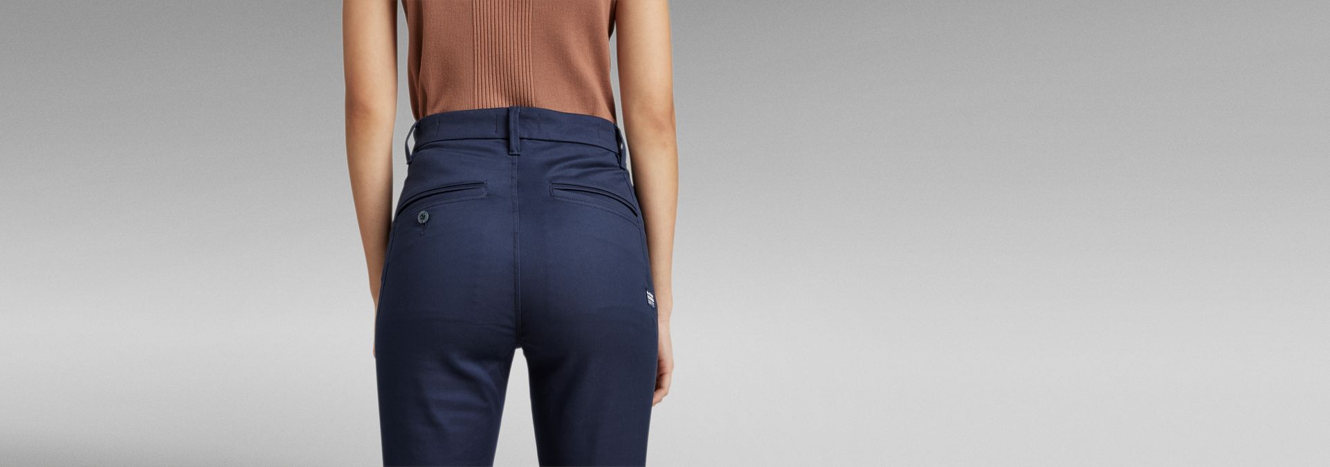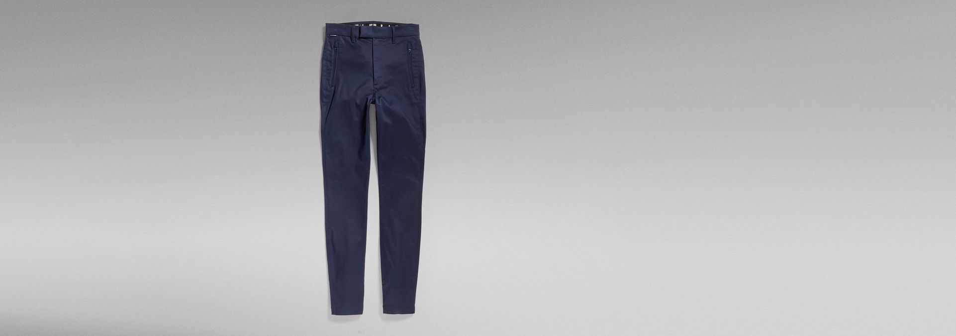 Concealed zippers at the waist pockets offer a woven tape detail at the top. Chino Weld is designed in a skinny fit with a high waist. Double welt back pockets show a button at one side. The hidden hook and bar closure ensures a clean finished waistband.