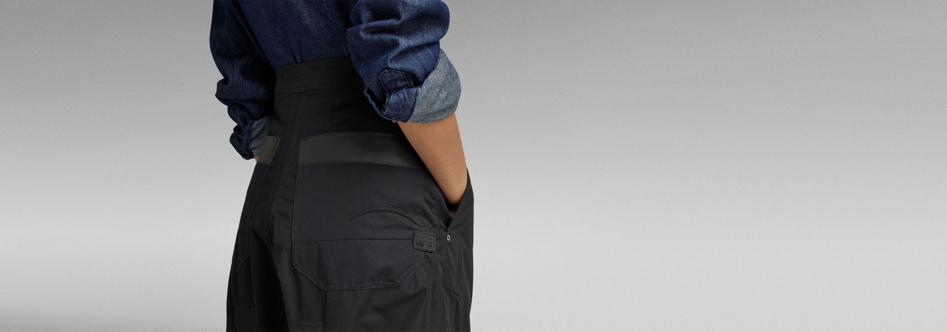 - Woven tapes- concealed inside for reinforcement, visible outside at the inner leg towards pocket- loop