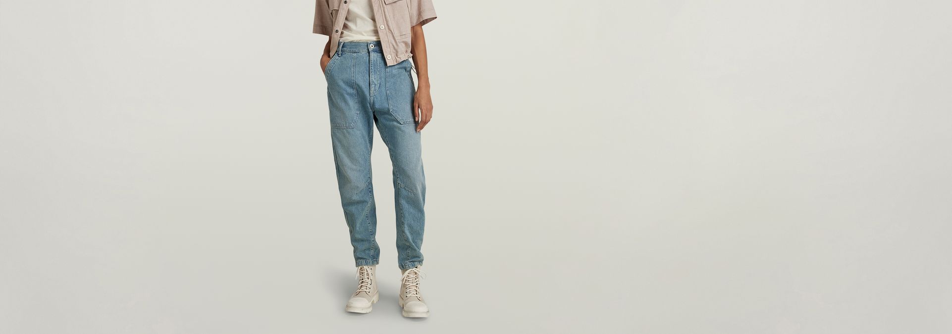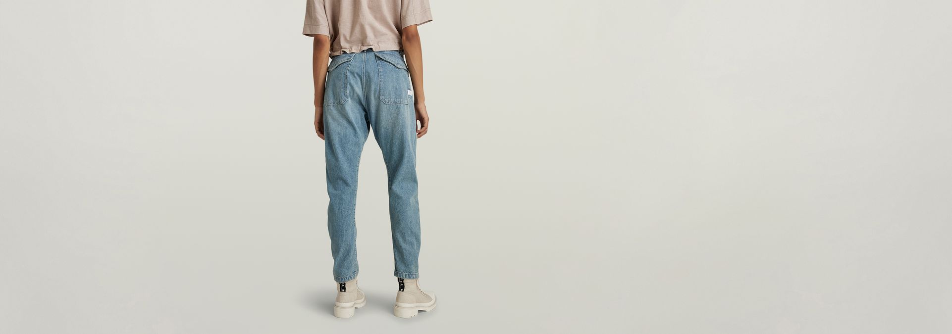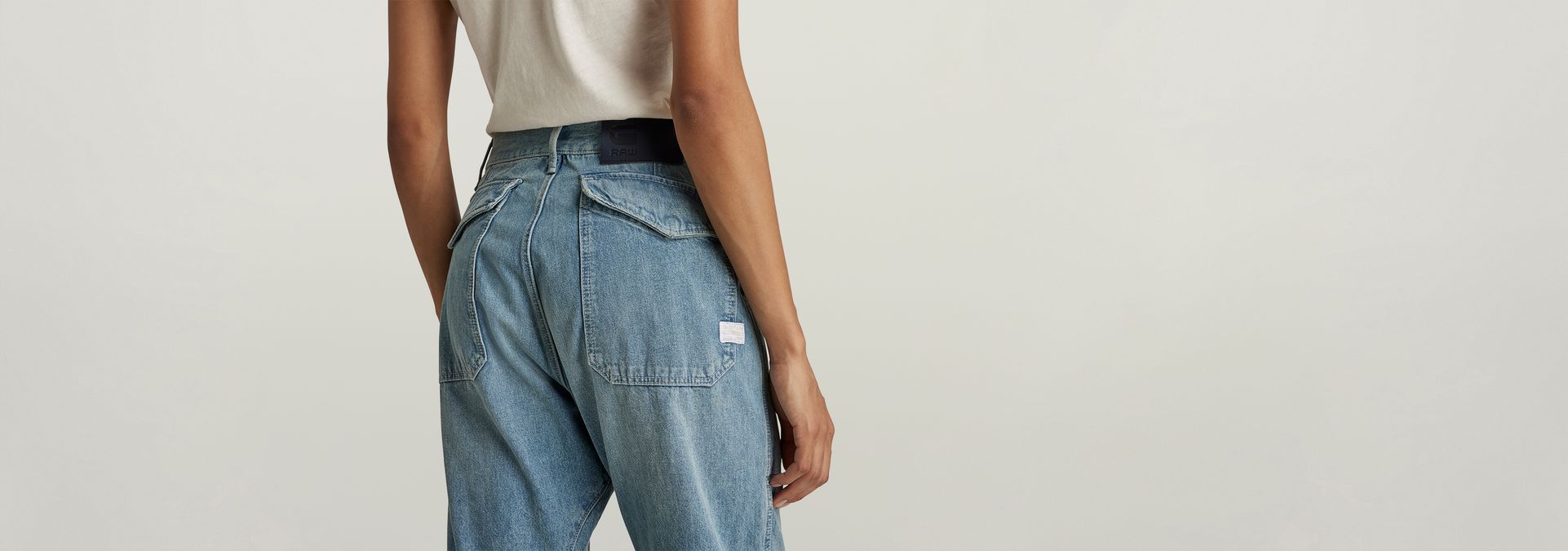 Denim Fatigue pants 3D Boyfriend offer a ultra high waist on a wide fit that tapers down towards the ankle. These 7/8 length pants show deep front pockets that are combined with flap pockets at the back. A hidden snap ensures a solid closure.