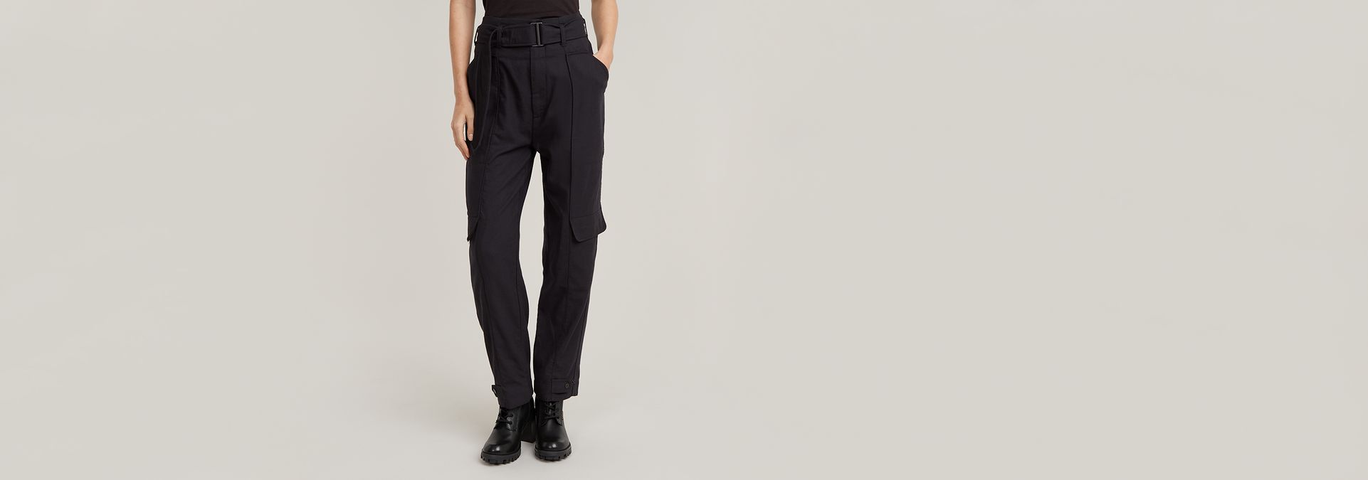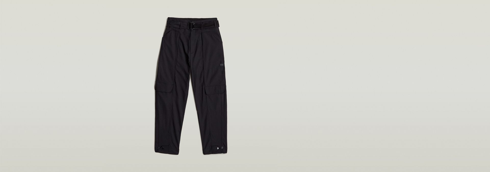 Wide legs and a pleated front distinguish these paperbag pants. Use the tabs to create more volume and a tighter fit around the ankle.