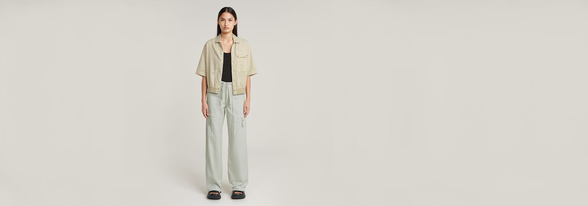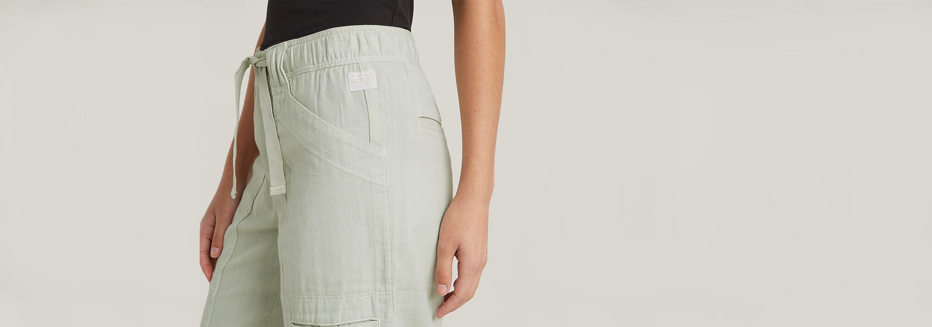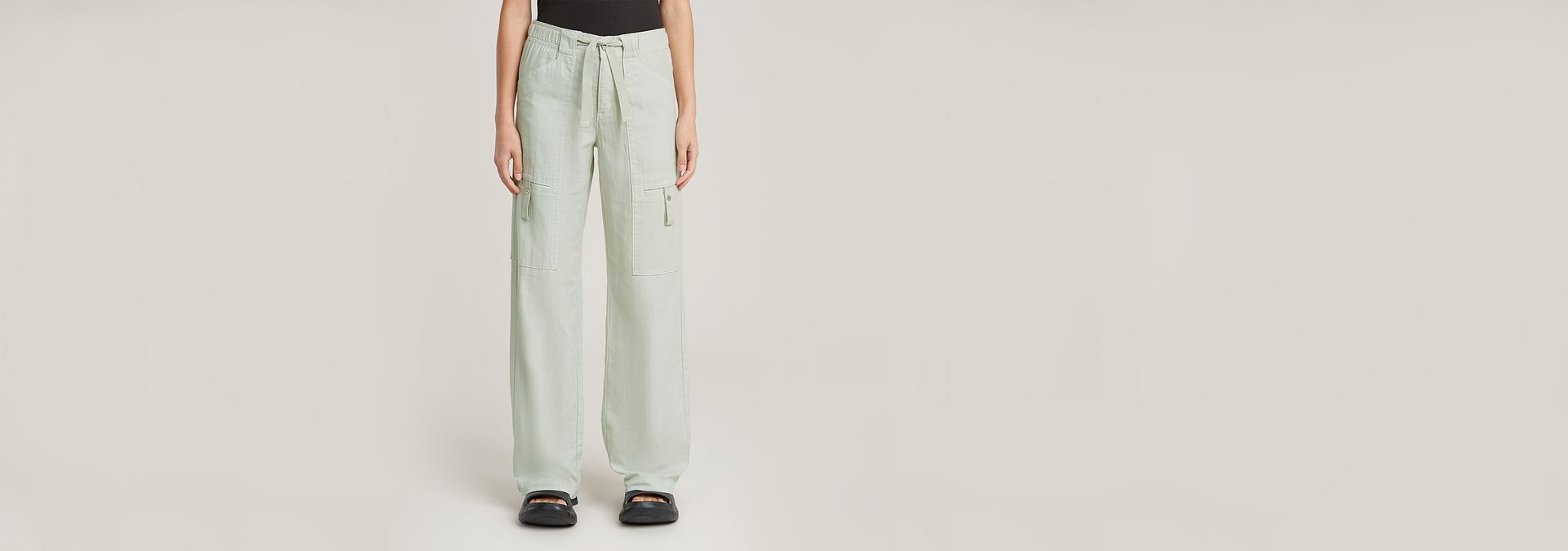 The Judee Cargo Trainer offers a straight fit with cargo pockets and a button fly.