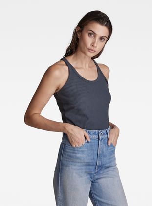 Tank top Rib is designed in a slim fit and offers a round neck. The armholes are finished with a binding alike the neckline.