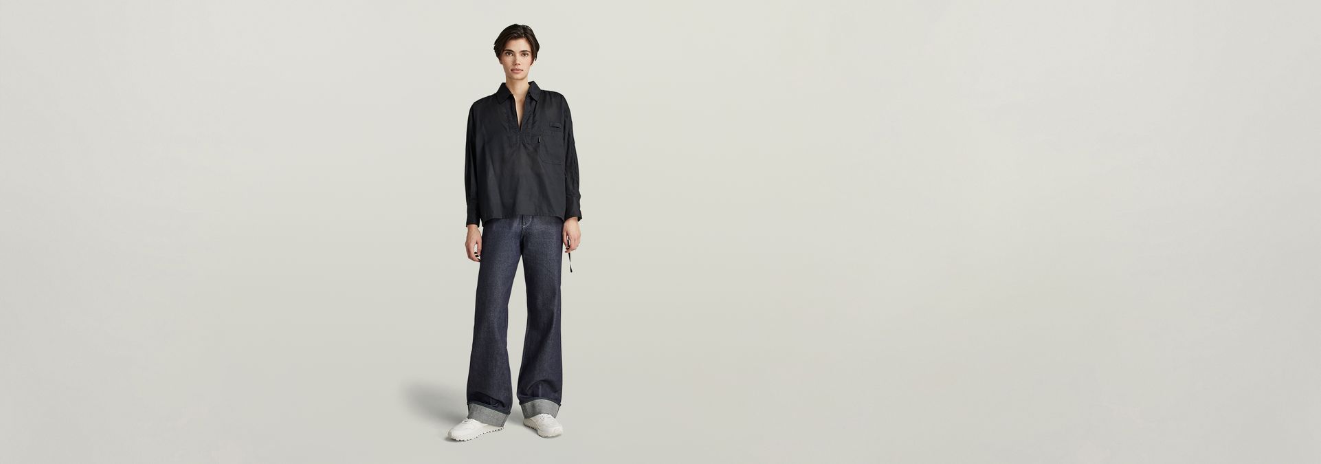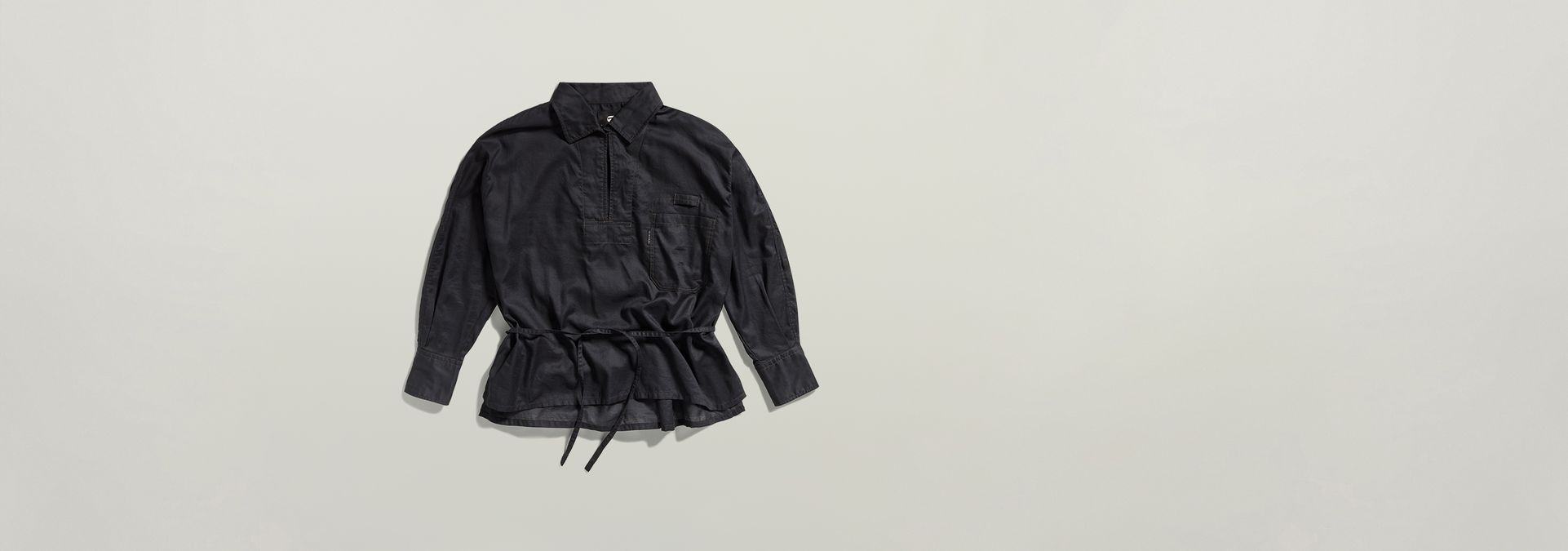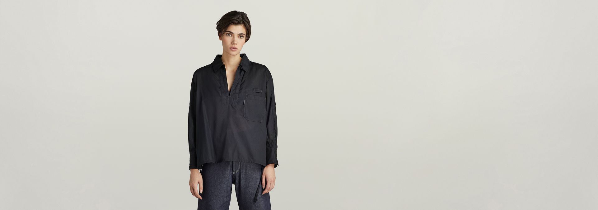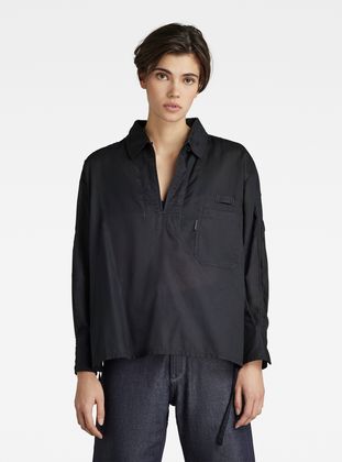 Polo Bowling is designed in a loose fit and shows an open placket with a small loop and button. Offering a straight hem with an extended back and side slits. By pulling the drawstring, a pleated back can be created with a tighter fit. The cuffs of this long sleeved polo can be tightened as well by use of the second button. Looped tapes are set above the chest pocket and the upper back neck to add even more detail.