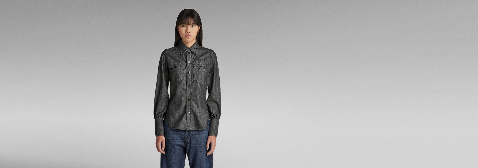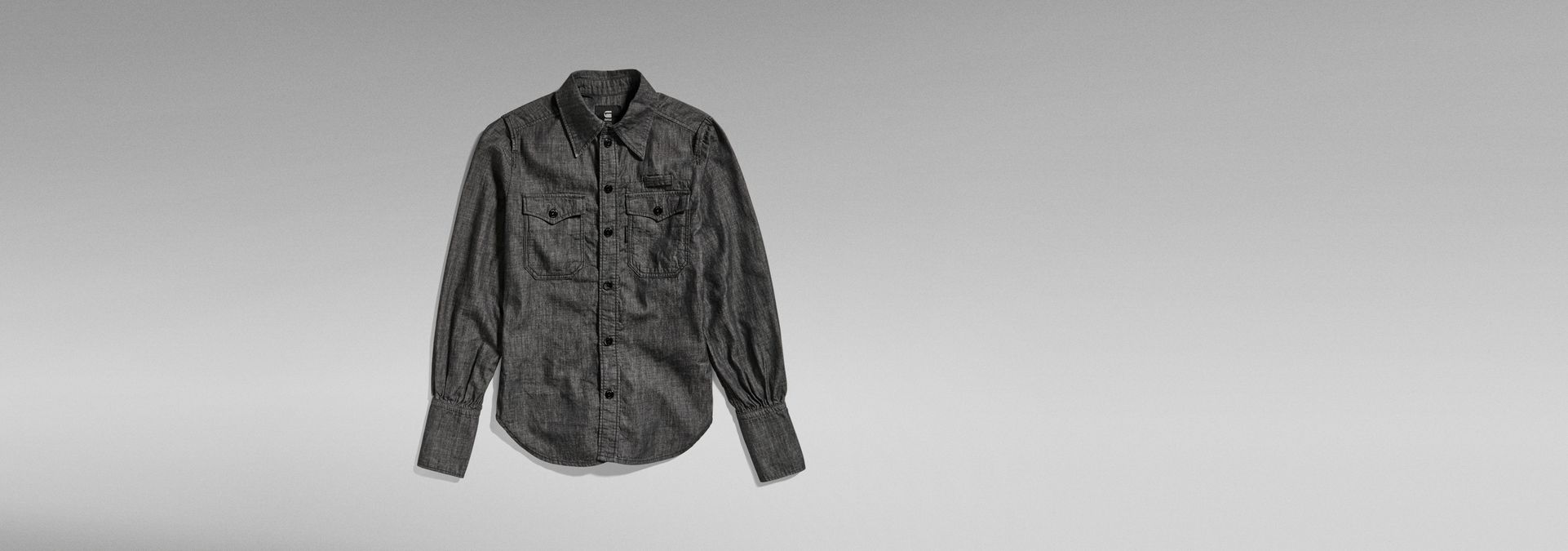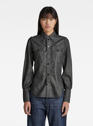 This shirt is designed in a slim fit and offers long sleeves with a gathered cuff. The cuffs are extended to allow for a fold over option. Shirt Slim shows flap pockets with a snap button closure. Looped details at the chest and shoulders complete this G-Star RAW shirt.
