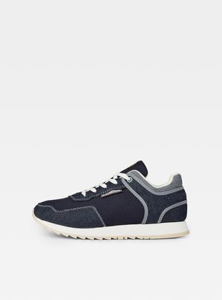 The Calow sneaker is a classic runner executed in a mix of utility inspired materials. The Y shaped ankle support featured on the ankle merges function with style. Flat laces and a metallic eyelet at the top complete these Calow sneakers.