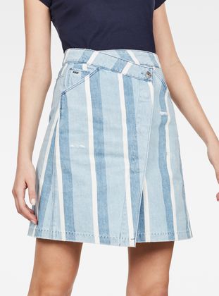 Diagonal wrapped skirt, closed with a shank button creates an easy going feel on an A-line silhouette. The multiple stripe repeat adds some aditional interest. Make this one your favourite skirt for this summer.