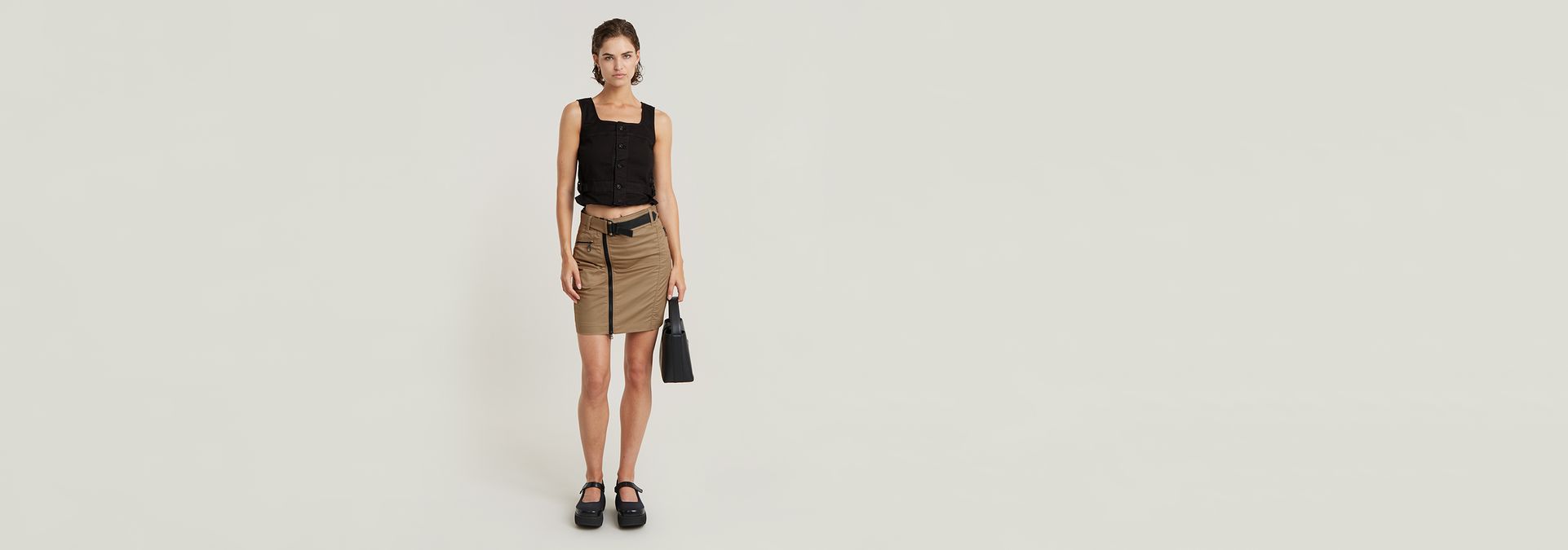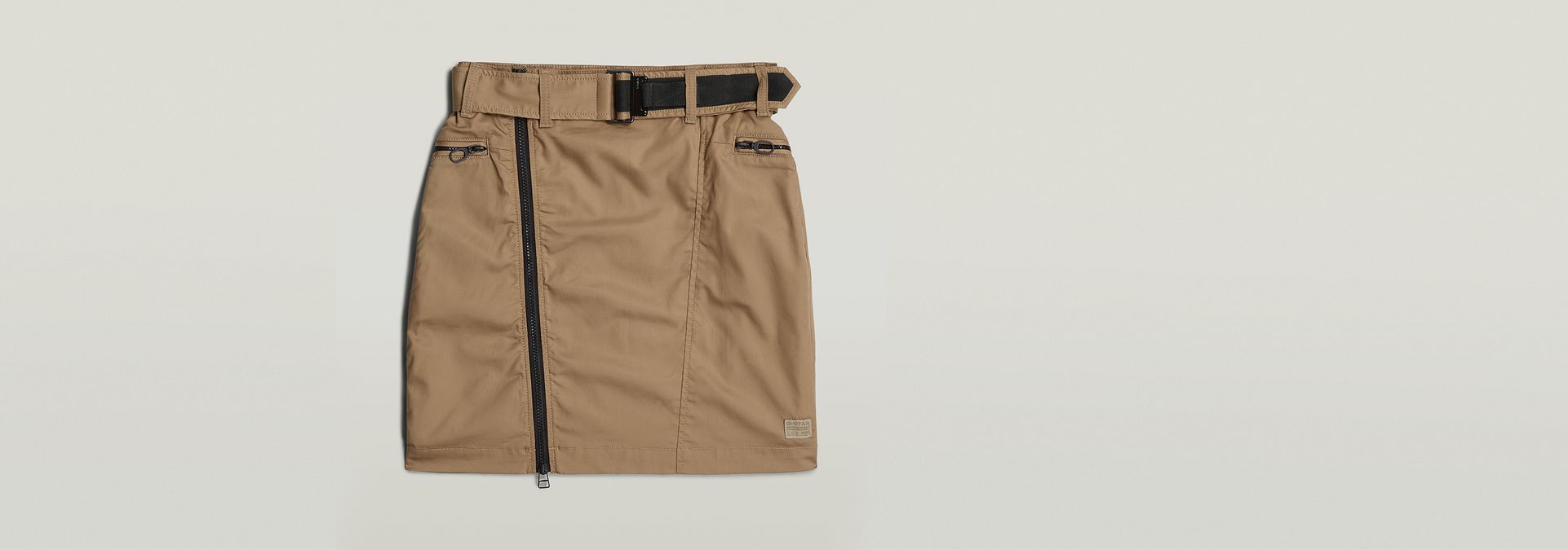 Skirt Zip is designed in a slim fit and offers a 2-way zipper closure. Open the lower front to create a slit.