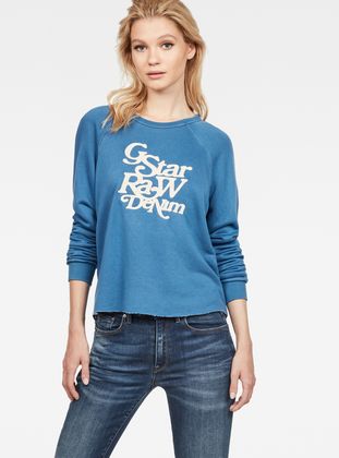 The graphic 11 Xzula sweater features a raw edge waistline with an extended backpanel. The rounded neck and cuffs ae designed in a rib jersey. At chest a G-Star RAW graphic is set.