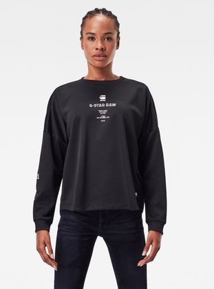 Relaxed sweater Multi Graphic features several prints. The sleeves are grown on towards the elbow and offer a ribbed cuff and the lower side seam shows a woven G-Star Originals label.